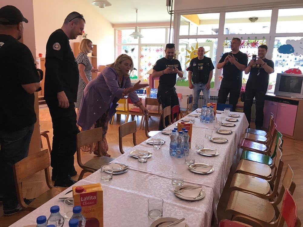 Nakon svečane torte uzeo sam mikrofon, zahvalio se velikim domaćinima i načelniku općine koji je također bio s nama na večeri, te pokrenuo malu humanitarnu akciju gdje je svaki član donirao nešto novca. Skupili smo ukupno 400€ i ja sam još nadodao 100€ te sam ujutro nazvao direktoricu lokalnog vrtića i pitao što im fali. Dobio sam informaciju da im fali televizor pa smo ujutro kupili jedan veliki televizor i mnoštvo bombona i drugih slatkiša te smo posjetili vrtić, iznenadili djecu i podijelili slatkiše. Za uzvrat tete su nam servirale baklave na malim stolovima za djecu, te smo se na trenutak vratili u dane vrtića i sjeli na male dječje sjedalice i uživali u predivnim baklavama.