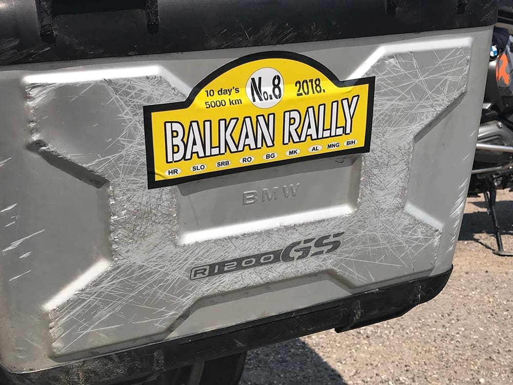 Malo prije srpske granice vidim da mi fali pola kolone, usporavam da se opet svi skupimo i u tom trenutku mi dolazi Miodrag Nikolić, inače predsjednik BMW MK VLASOTINCE i obavještava me da je našem sudioniku Petričeviću u vožnji ispao bočni kufer s GS-a. Stao sam sa strane i pričekao dok se nisu svi okupili i s njima Petričević koji je ponovno namontirao bočni kufer koji je bio vidno isfrižan ali nije puknuo nigdje. Tu strašnu i ružnu ogrebotinu smo popravili tako da smo veliku naljepnicu BALKAN RALLYJA nalijepili preko i nastavili dalje prema Srbiji. Razlog otpadanja kufera je zasigurno bilo neoprezno kačenje kufera na nosač.