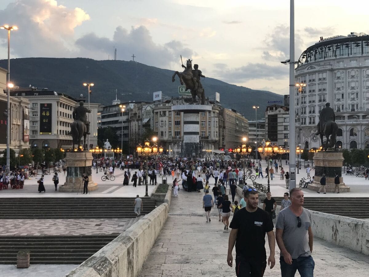 Nakon panoramske vožnje odlazimo do hotela Monaco gdje nas dočekuju i članovi kluba BMW Makedonija. Nakon toga smo se smjestili i otuširali, otišli u obilazak predivnog Skopja. Na glavnom trgu dominira veliki kip Aleksandra Velikog na konju sto je ujedno i jedna velika ogromna fontana, sami centar predivnog Skopja možete vidjeti u ovom videu.