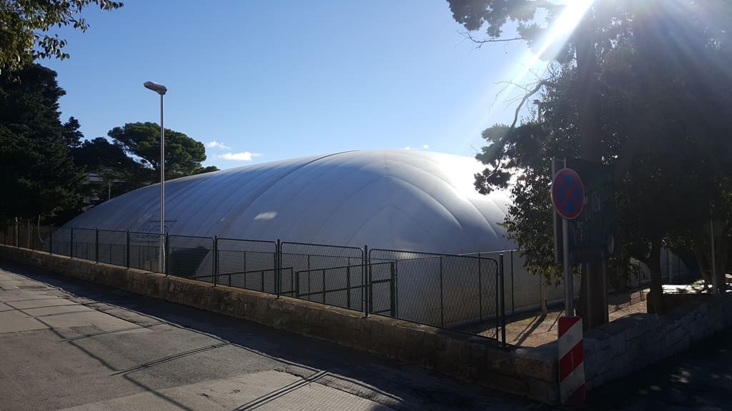 Kako su nam dojavili čitatelji, teren u Stobreču koji je zimi natkriven, je poplavio prilikom zadnjih obilnih kiša. Inače, radi se o privatnom kompleksu. Što se tiče Splita, praksa je dosadašnjih godina bila da se već tijekom listopada na Firulama montira balon te se problem zime rješavao na ovaj praktičan način.