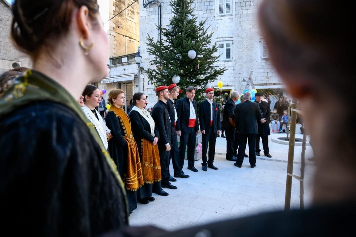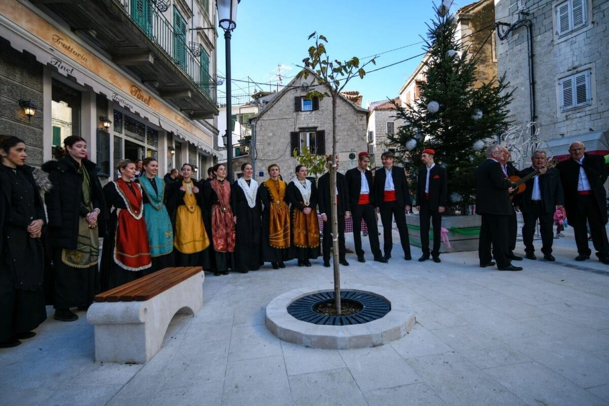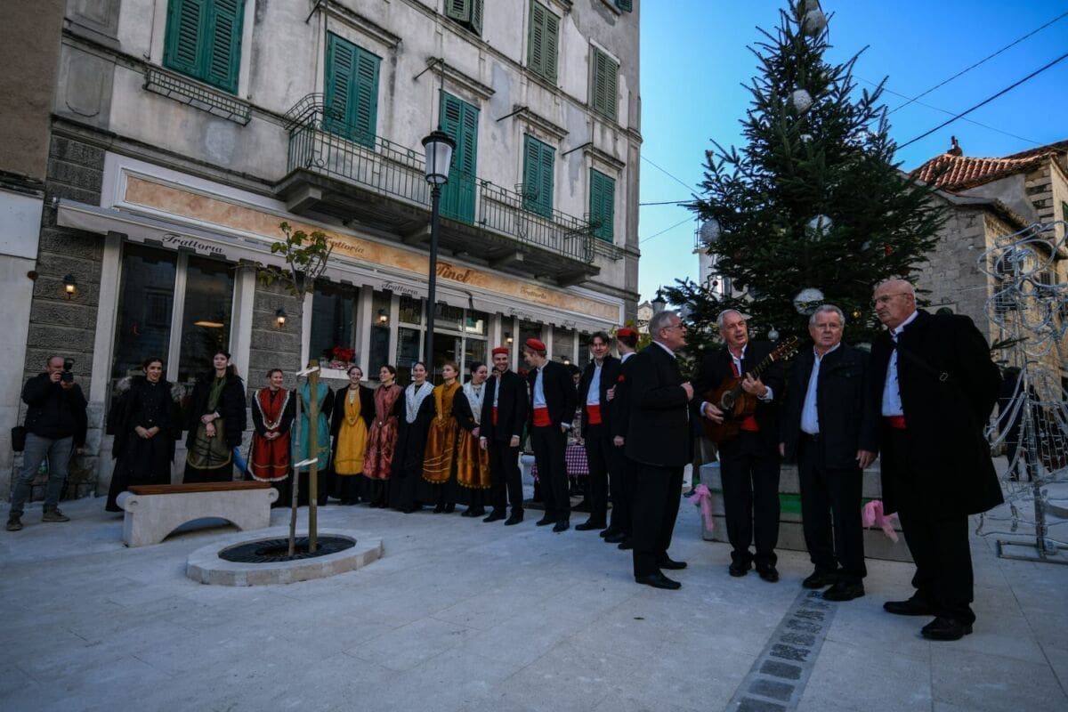 Točno u podne zapivala je klapa na novom gradskom trgu na Šperunu, a okupljenim Velovarošanima potom se obratio gradonačelnik Andro Krstulović Opara zajedno s predsjednikom kotara Mirkom Ruščićem, poželjevši svima ugodne nadolazeće božićne blagdane.