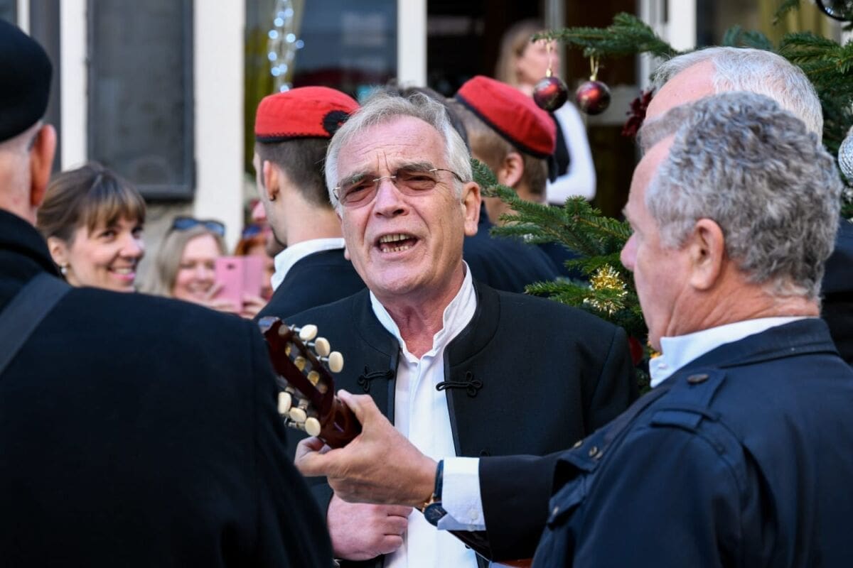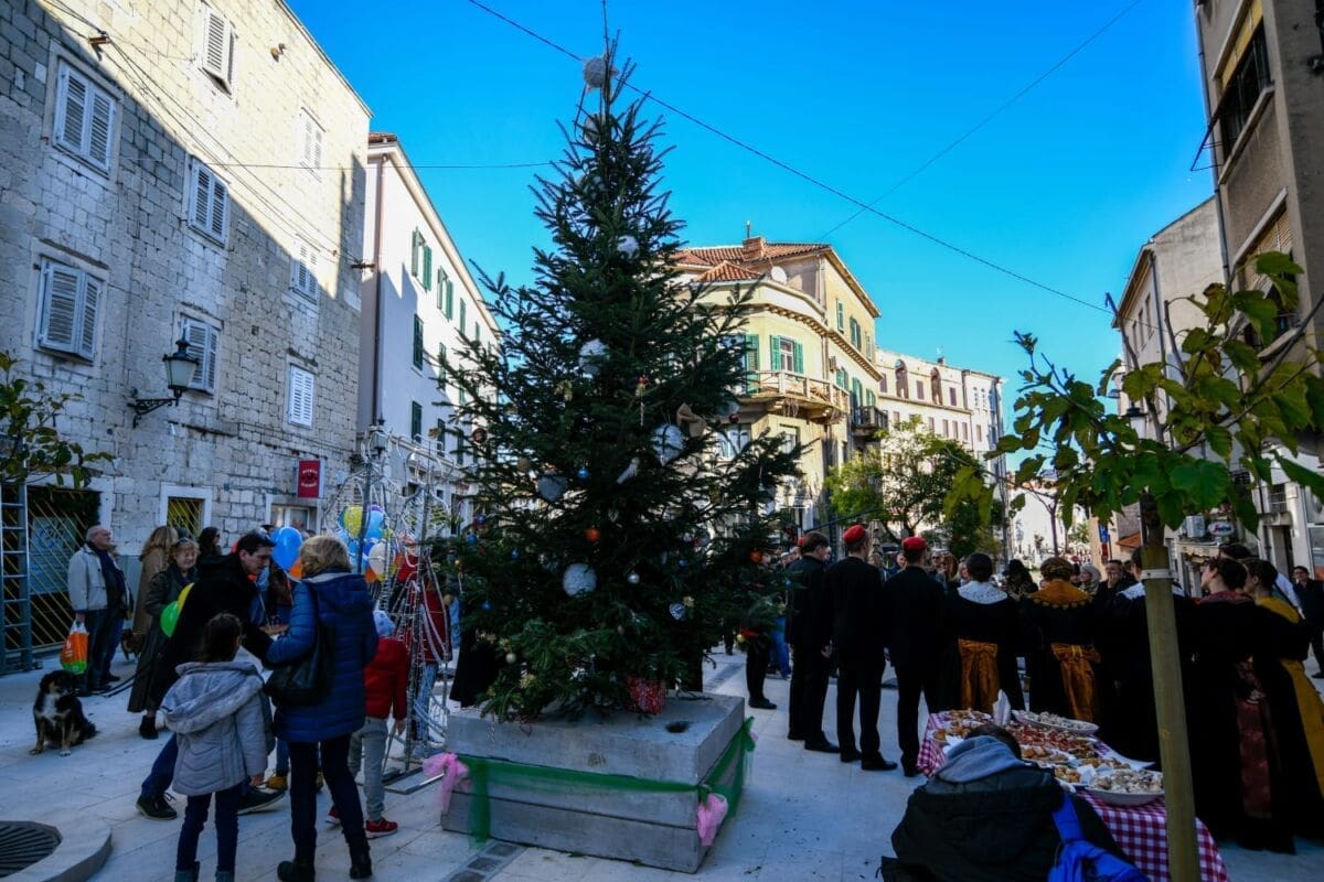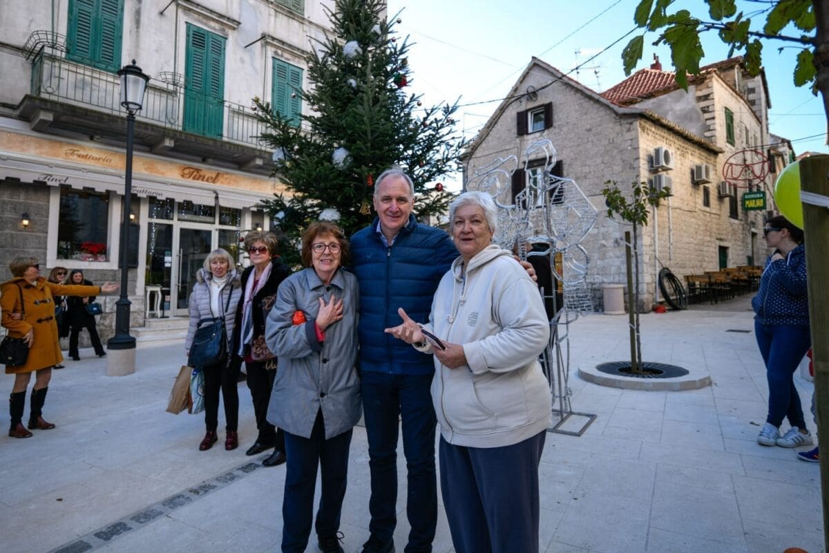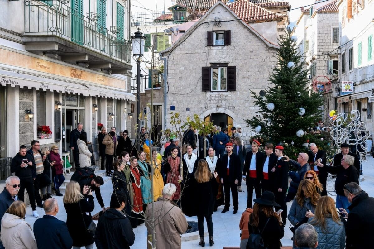 Točno u podne zapivala je klapa na novom gradskom trgu na Šperunu, a okupljenim Velovarošanima potom se obratio gradonačelnik Andro Krstulović Opara zajedno s predsjednikom kotara Mirkom Ruščićem, poželjevši svima ugodne nadolazeće božićne blagdane.