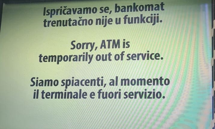 Druga zanimljiva stvar je da, ako niste ponijeli gotovinu sa sobom, teško ćete do nje. Palača je puna bankomata, ali nema koristi od njih kad nisu u funkciji. Tu i tamo pronaći ćete neki koji radi, jedva. Ok, znalo se i za to ranije, postoji i karta s dostupnim bankomatima, ali ima i onih manje vičnih tehnologiji kojima se ne da tražiti po internetu kako mogu doći do kuna, pardon eura.