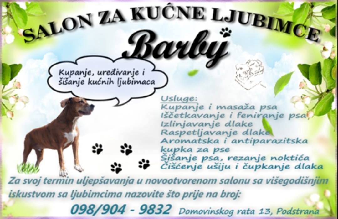Prošle jeseni otvoren je lijepi i moderni Salon za kućne ljubimce Barby u Strožancu (Podstrana). Salon se nalazi svega stotinjak metara od magistrale na adresi Domovinskog rata 13.