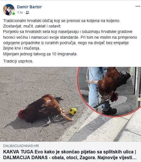 Dopredsjednik splitskog SDP-a Damir Barbir i inače poznat kao veliki ljubitelj životinja, komentirao je slučaj zlostavljanja pijetla na splitskim ulicama o kojem smo pisali ranije danas.