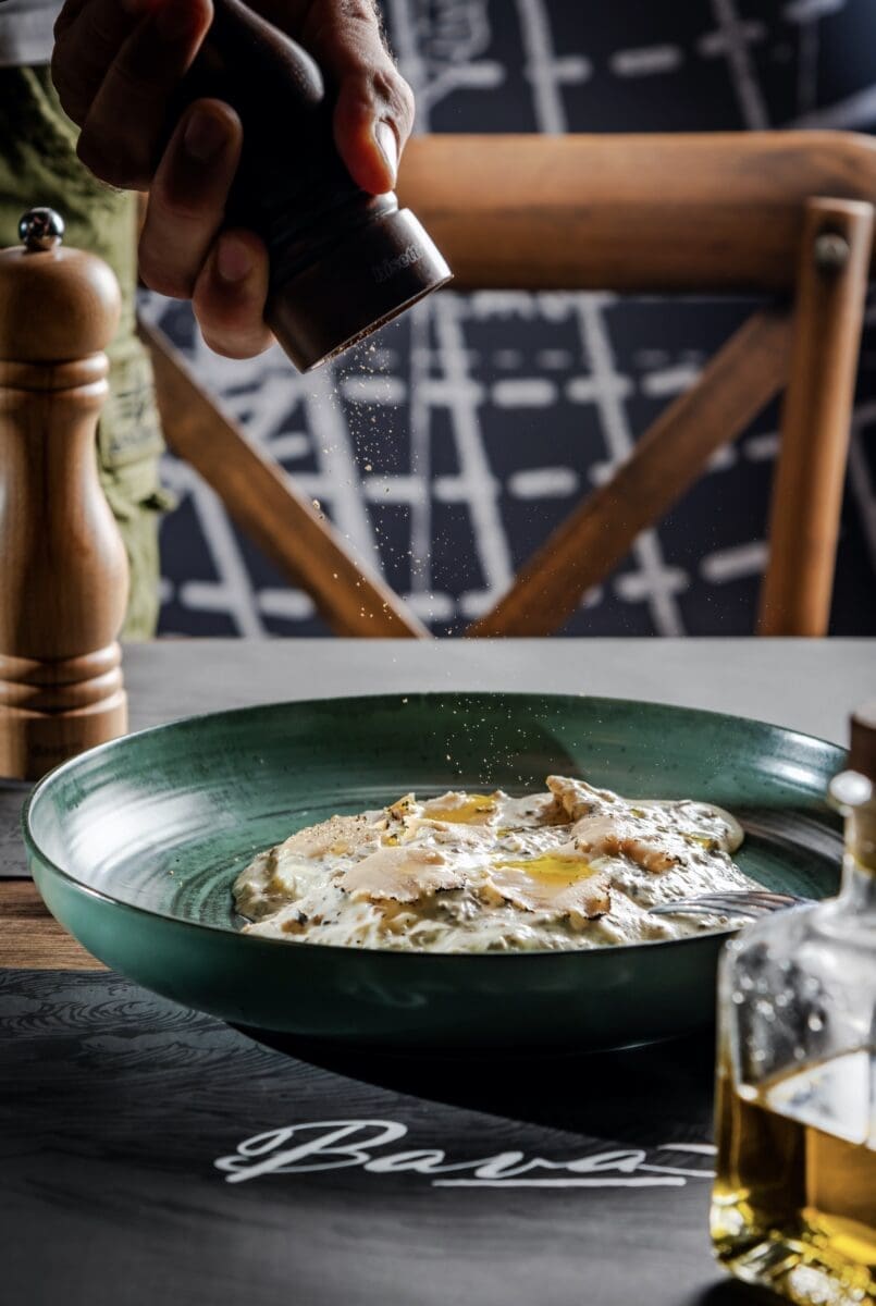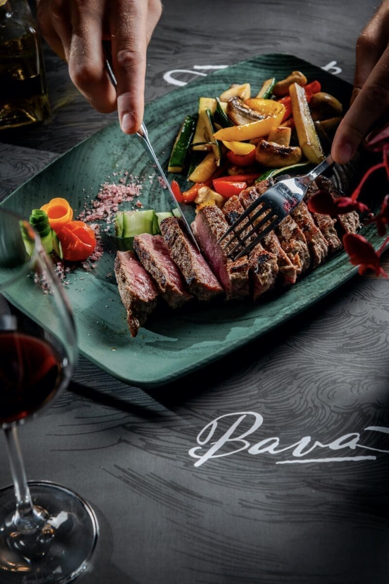 Bava je mjesto gdje možete popiti svoju prvu jutarnju kavu, pojesti jedan od popularnih doručaka; zobene kaše ili tost avokado losos, ali isto tako uživati u ručku i večeri, uz ponudu tradicionalnih jela kao pašticade s domaćim njokima ili punjenih raviola u umaku od tartufa. Bava se ponosi sezonski biranim sastojcima i raznolikom ponudom koja uključuje tradicionalnu dalmatinsku hranu, ali i onu moderniju koja prati svjetske gastro trendove.