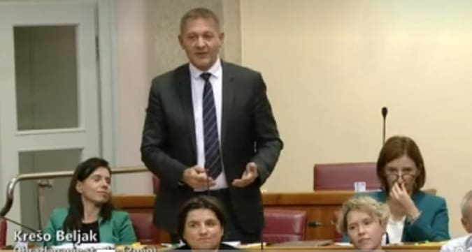 "Zahvali nam što smo te uhapsili", poručio je Beljaku, praćen smijehom ostalih zastupnika. Beljak je pak ustrajao da ga jugoslavenska policija nije hapsila, nego tukla zbog pjesme Ustani bane, a da je ono što se njemu pripisuje radila hrvatska policija.