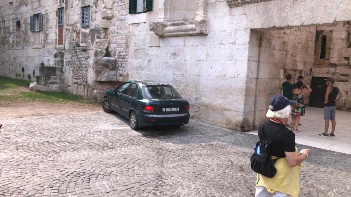 Hyundai accent osvanuo je parkiran tik do Zlatnih vrata. Njegov vlasnik parkirao ga je upravo tako da bude pod 'nadzorom' velikog Grgura u slučaju da ga, ne daj Bože, netko odluči ukrasti ili provaliti u njega i iščupati radio, ako ga ima.