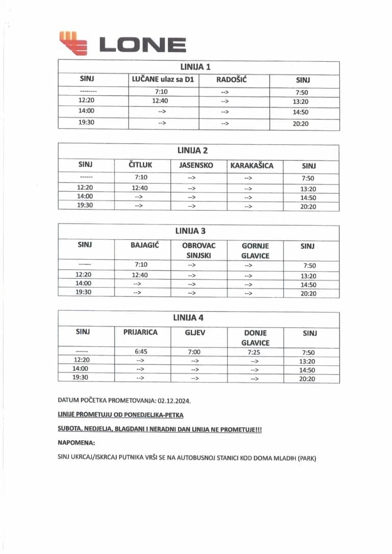 Ova odluka predstavlja važan korak prema rješavanju problema prijevoza u Sinju i okolnim područjima, posebice za stanovnike udaljenih naselja. Omogućuje pouzdane prometne veze za srednjoškolce, što je ključno za njihovo obrazovanje, ali i za opću kvalitetu života.