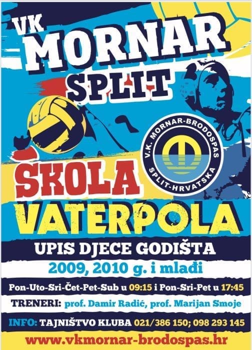 Vaterpolski klub Mornar objavio je da je u tijeku upis u školu vaterpola za godišta 2010., 2011. i mlađih.