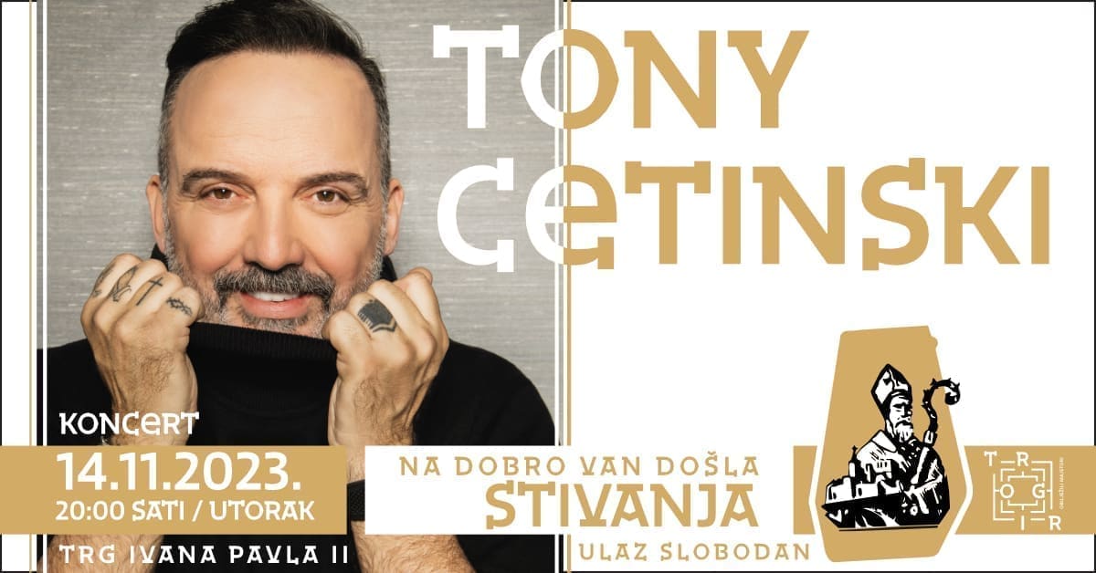 Koncert Tonyja Cetinskog će se u Trogiru održati povodom proslave Stivanje – Dana grada Trogira 14. studenog 2023. godine s početkom u 20:00 sati na Trgu Ivana Pavla II. Ulaz za sve posjetitelje je, naravno, besplatan.