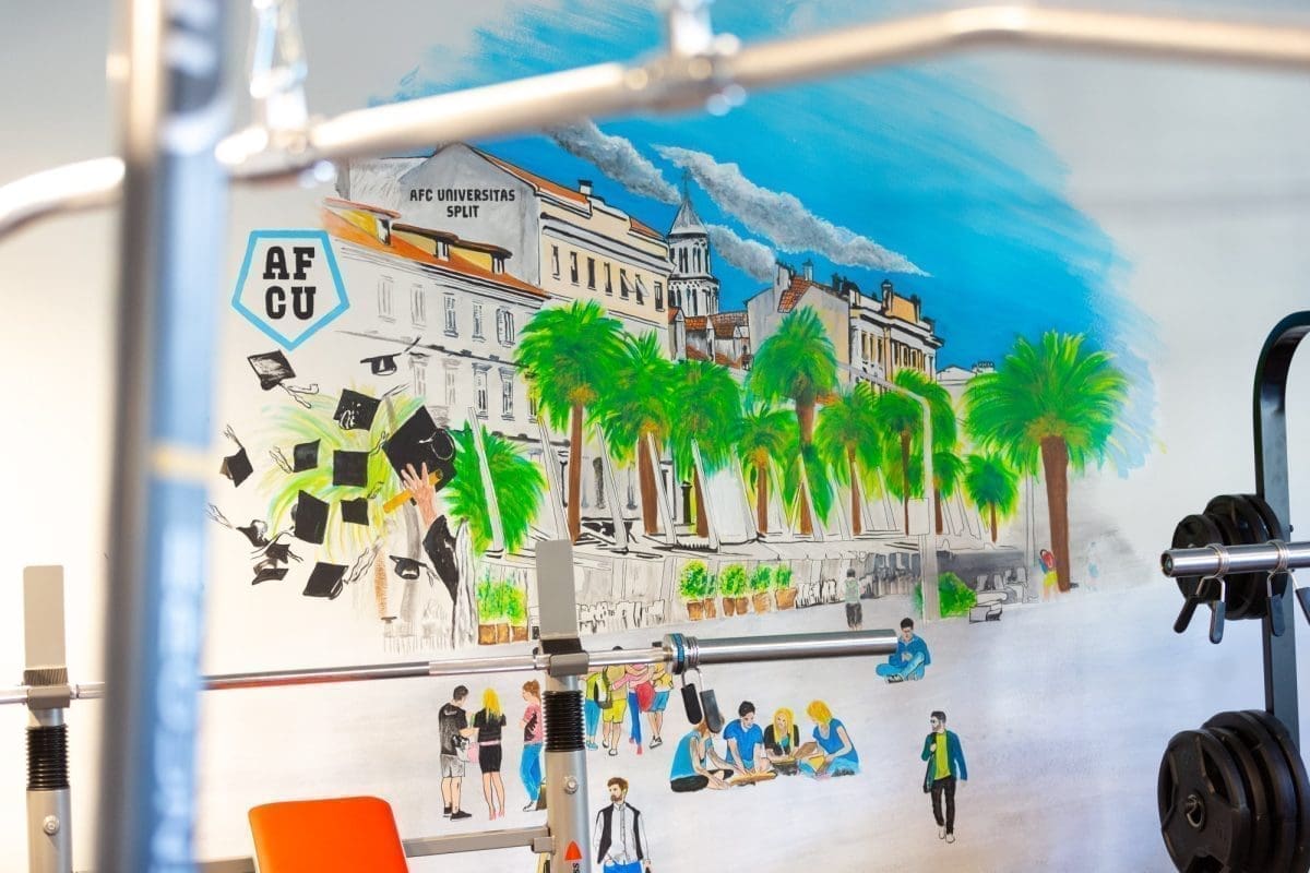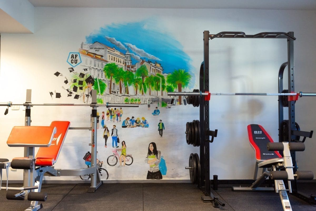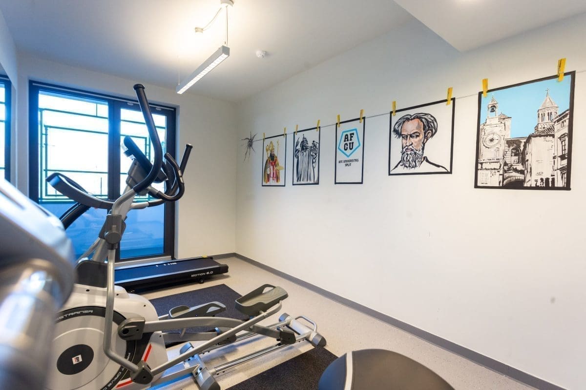 Zidovi su lijepo oslikani, postavljena su i ogledala, a pogled kroz prozor puca na Kaštelanski zaljev. Svim studentima želimo dobar trening i još bolji akademski uspjeh.