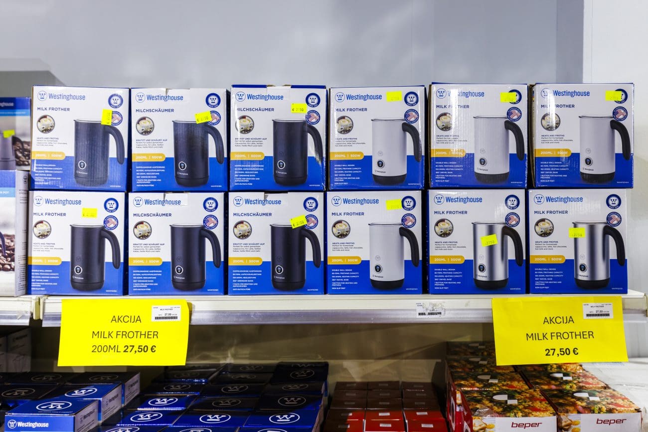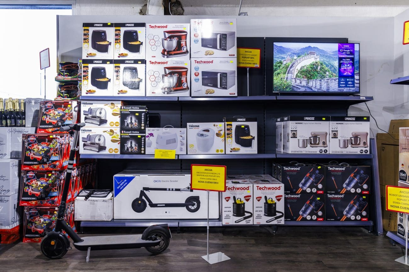 Posebnu pažnju privlači segment malih kućanskih aparata gdje cijene počinju na razinama rijetko viđenima u klasičnoj maloprodaji. Princess airfryer dostupan je po cijeni od 29 eura, kuhala za vodu već od 6,50 eura, razni uređaji za kućanstvo od 3,50 eura, a dodaci za kavu od 0,50 eura.