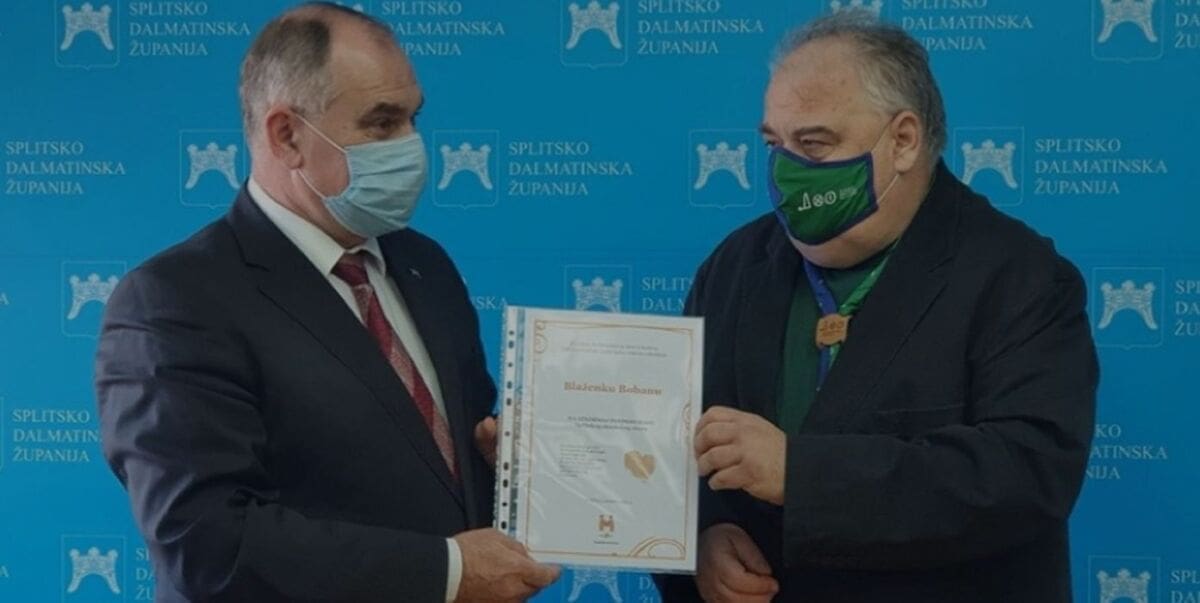 Županu Blaženku Bobanu predsjednik Splitsko skautskog zbora Edi Perić uručio je i zahvalnicu: