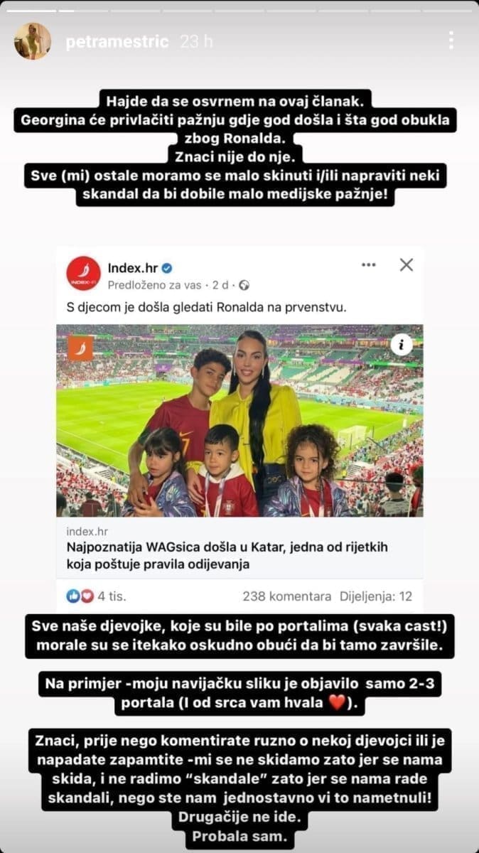 Tim povodom, javila se influencerica Petra Meštrić, inače diplomirana liječnica koja je hrvatskoj javnosti poznata zahvaljujući društvenim mrežama na kojima broji preko 50 tisuća pratitelja.