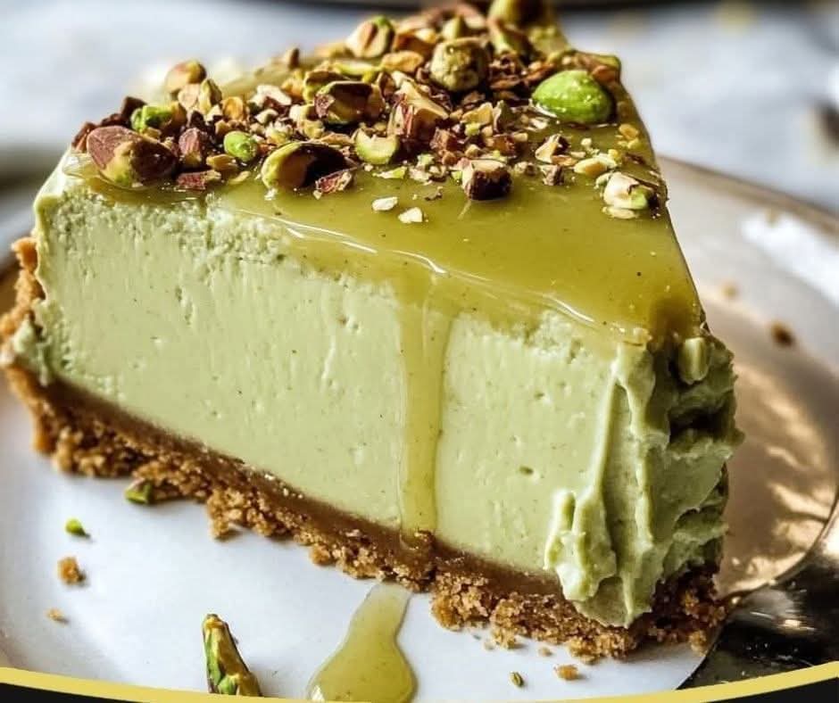 Izliti fil preko podloge, i poravnati površinu. Nježno udariti oblikom za torte od stol par puta da izbijete mjehuriće zraka. Zalediti na 4 do 6 sati. Izvaditi iz leda 15 min prije posluživanja, i ukrasiti vrh s pistacijama i javorovim sirupom.