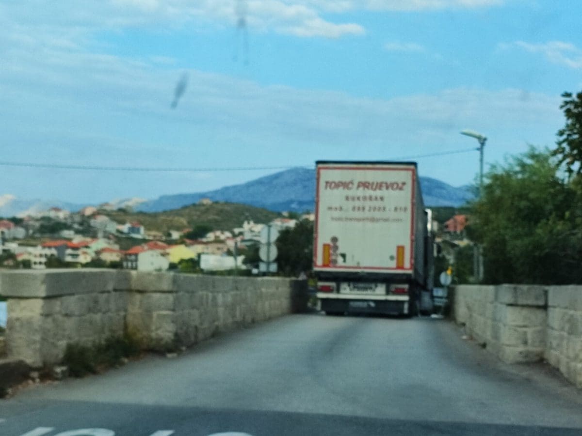 Više puta pisali smo o slučaju mosta u Rakitama, na ulazu u Korešnicu. Naime, riječ je o povijesnom mostu na kojem stoji znak zabrane prometovanja teretnim vozilima iznad 5.5 tona. Unatoč tome, svako malo može se vidjeti poneku "grdosiju" koja tamo ne bi smjela prolaziti. Vozači kamiona često umjesto kroz centar Žrnovnice, biraju upravo ovaj put.