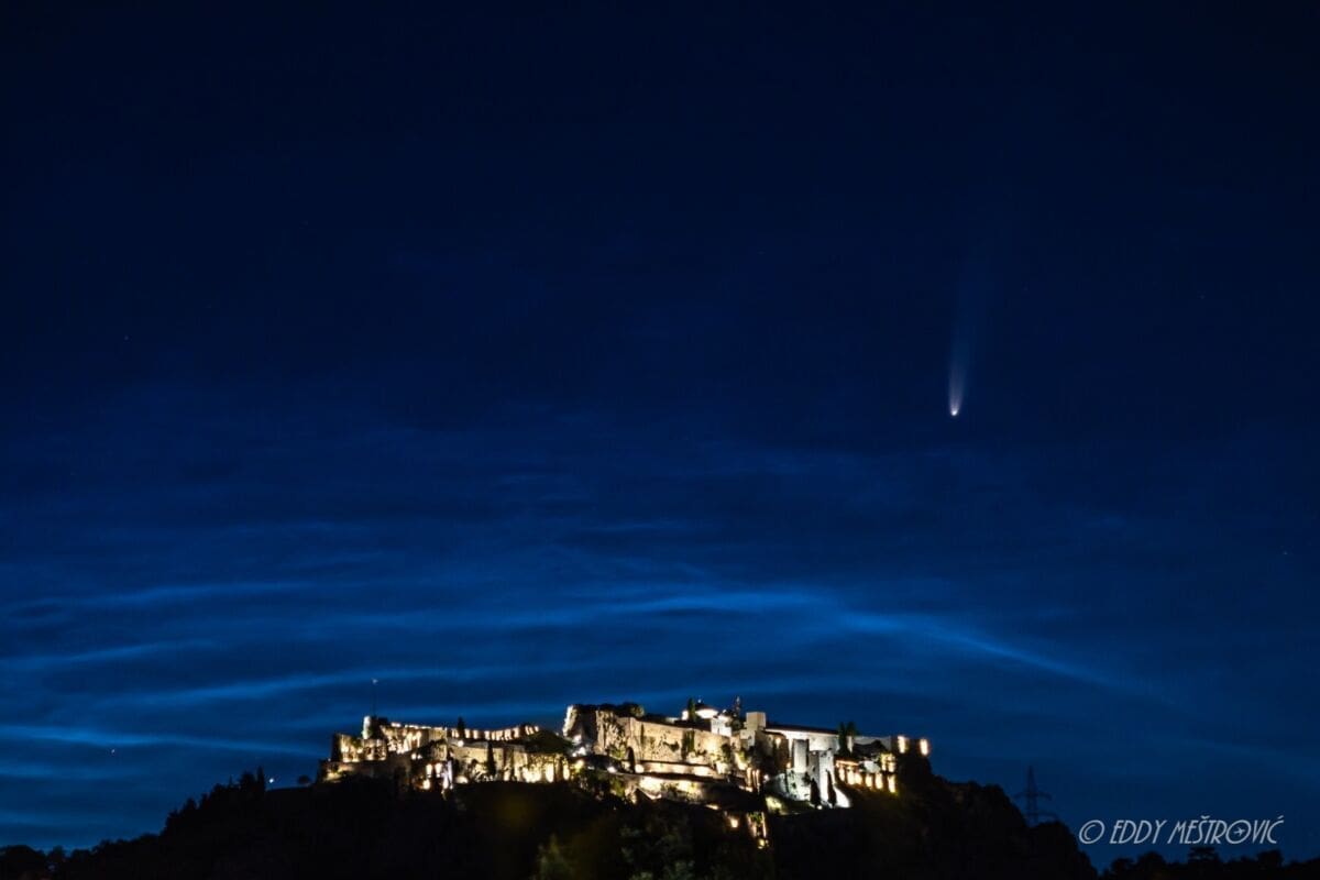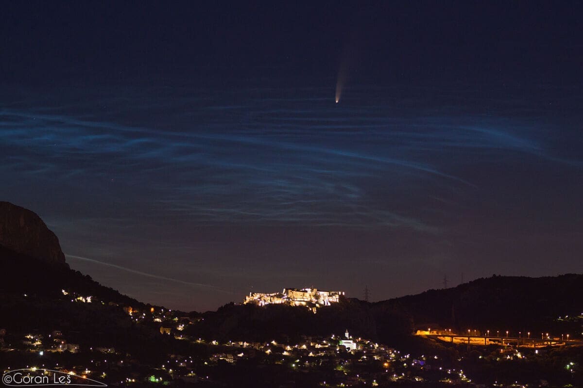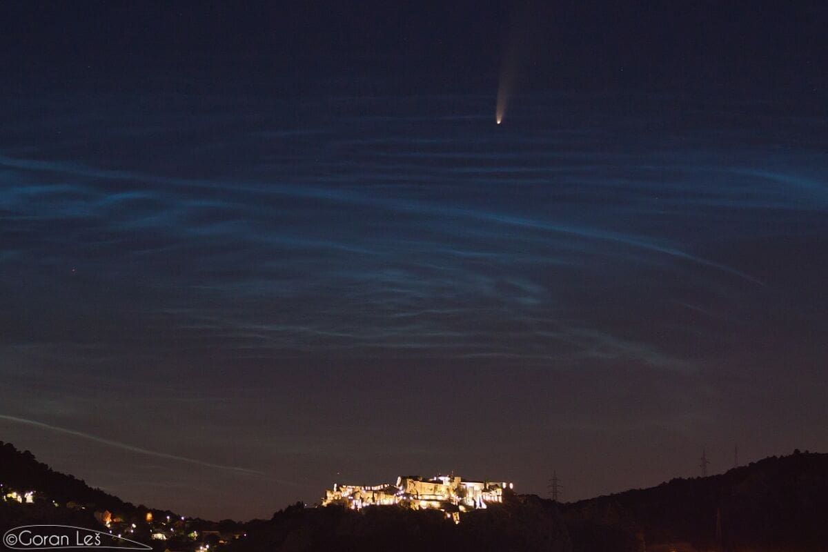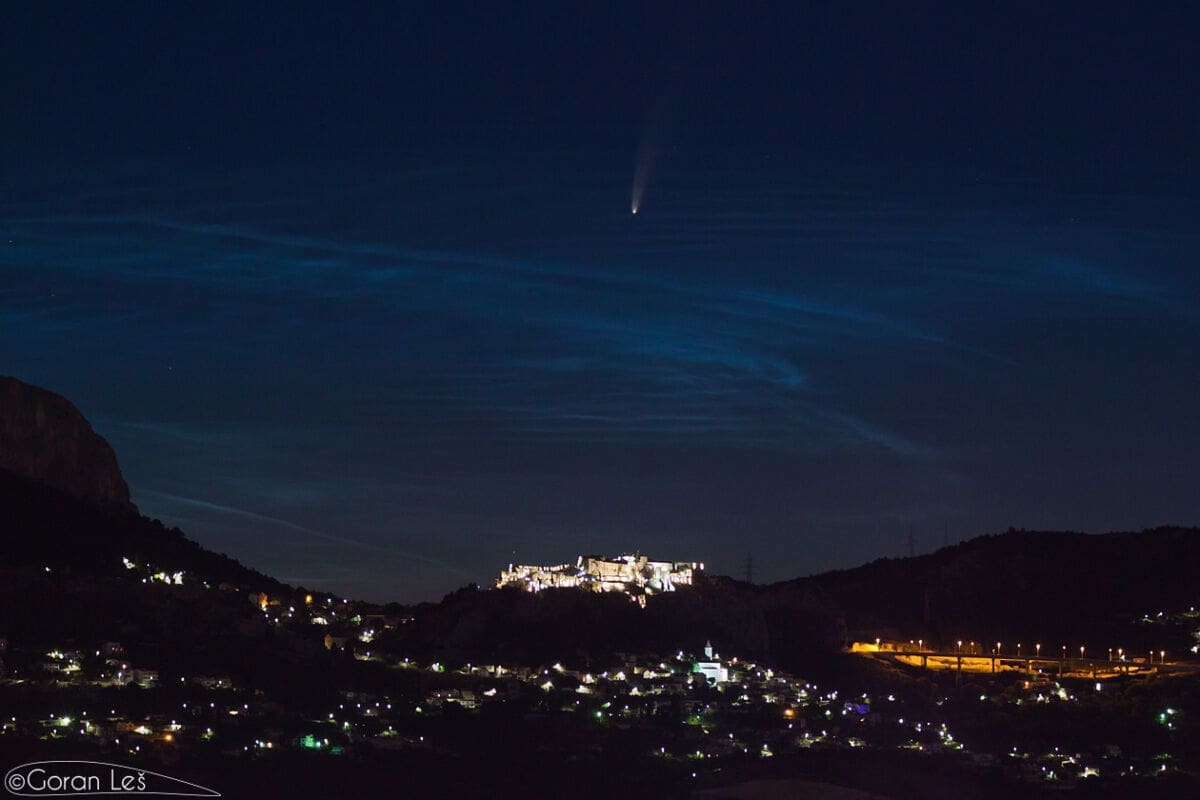 Splitski fotografi Goran Leš i Eddy Meštrović rano jutros snimili su ovaj komet iznad Klisa, točnije iznad Kliške tvrđave. Ionako prekrasan prizor dodatno je uljepšao jedan meteorološki fenomen. Naime, upravo u vrijeme fotografiranja, na nebu su se mogli vidjeti noktilucentni oblaci, poznatiji kao svijetleći noćni oblaci. Za razliku od svih uobičajenih vrsta, ovi oblaci se ne nalaze u troposferi, nego u mezosferi na visinama do čak 85 kilometara.