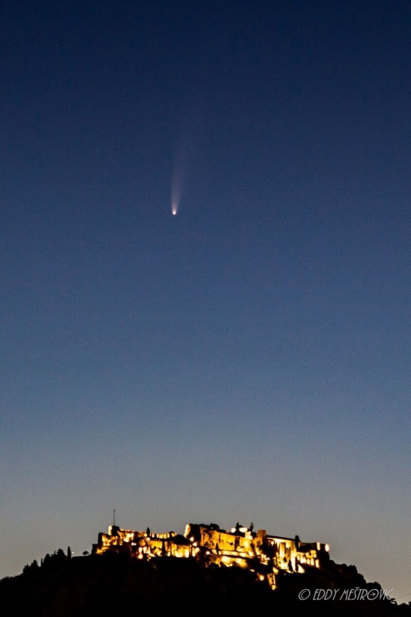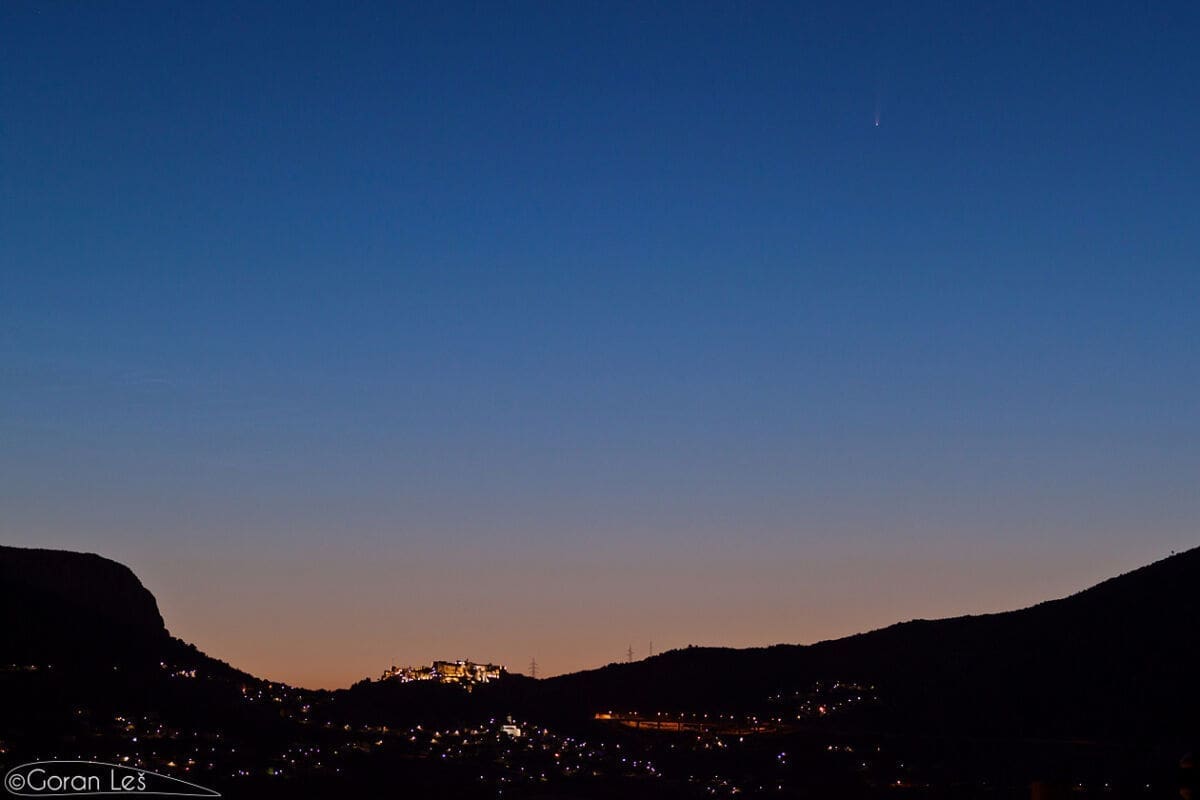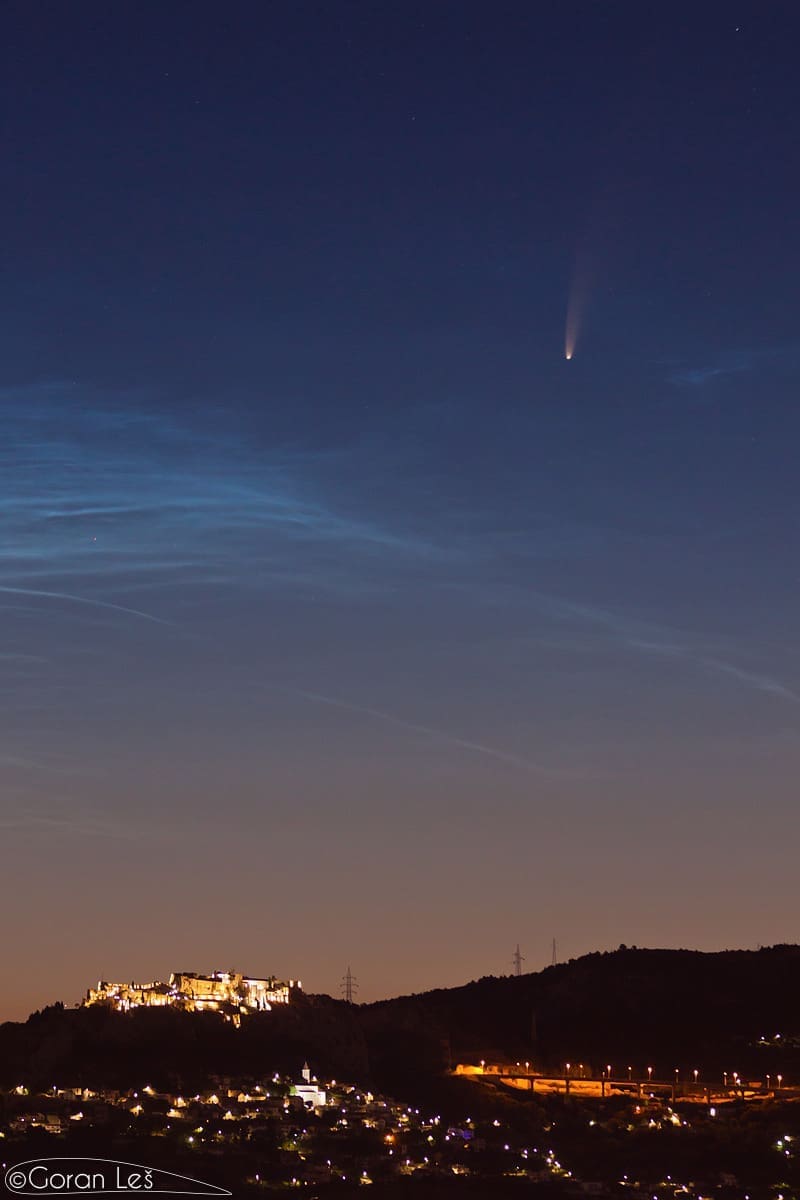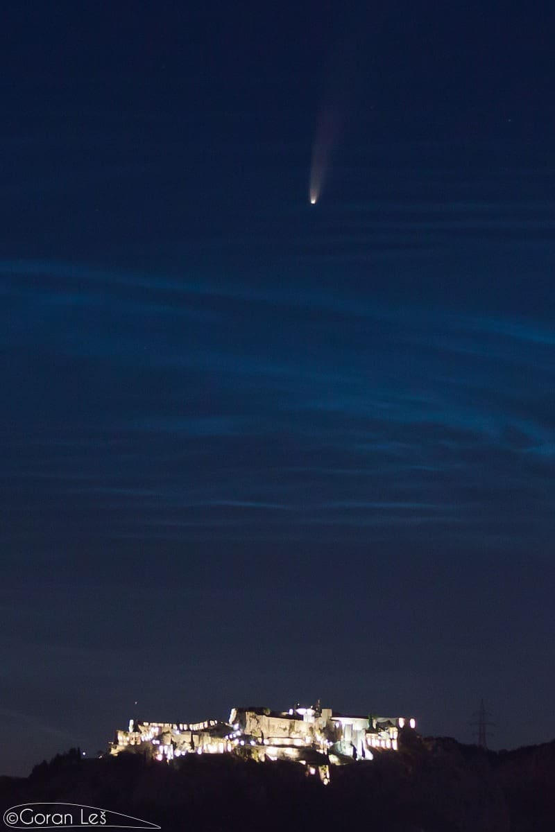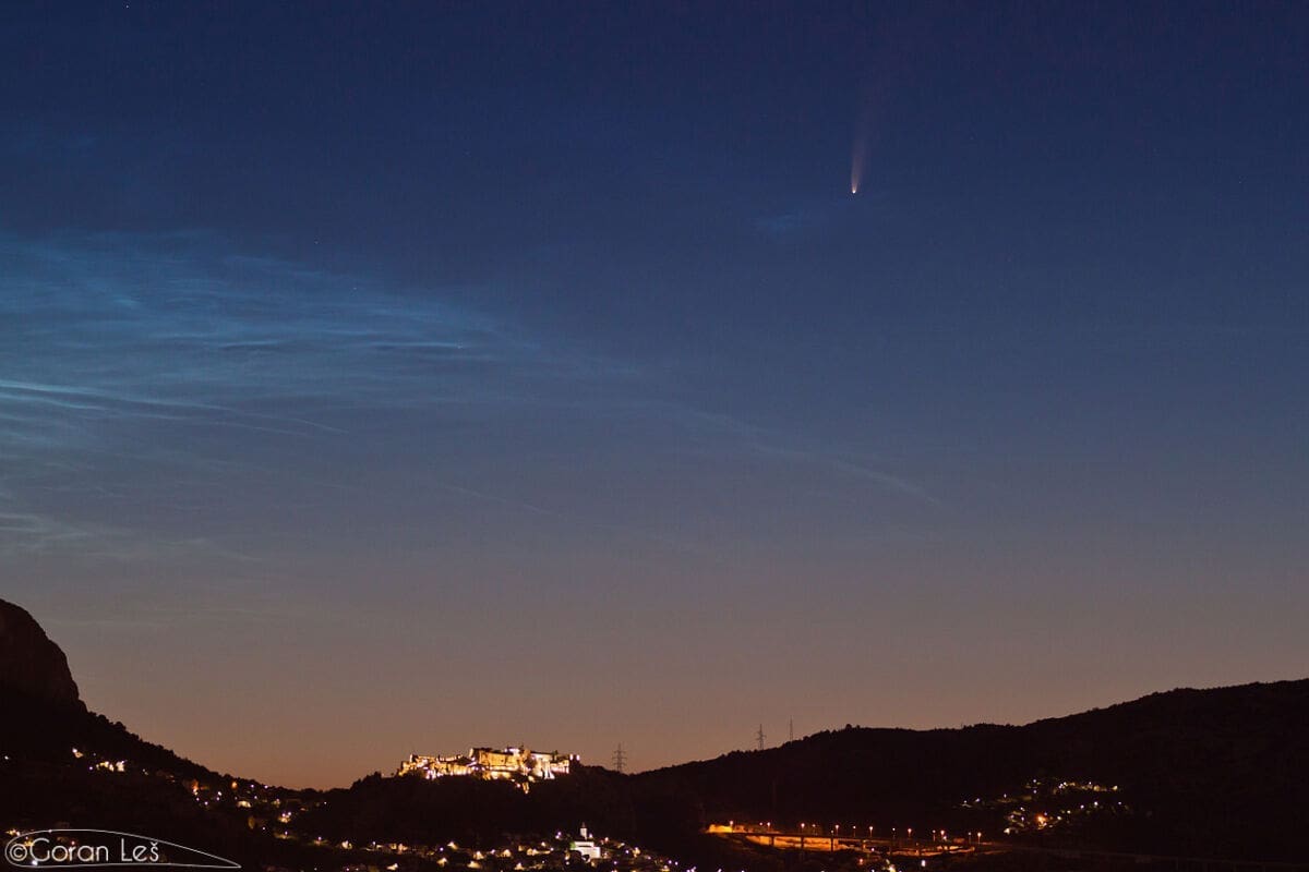 Splitski fotografi Goran Leš i Eddy Meštrović rano jutros snimili su ovaj komet iznad Klisa, točnije iznad Kliške tvrđave. Ionako prekrasan prizor dodatno je uljepšao jedan meteorološki fenomen. Naime, upravo u vrijeme fotografiranja, na nebu su se mogli vidjeti noktilucentni oblaci, poznatiji kao svijetleći noćni oblaci. Za razliku od svih uobičajenih vrsta, ovi oblaci se ne nalaze u troposferi, nego u mezosferi na visinama do čak 85 kilometara.