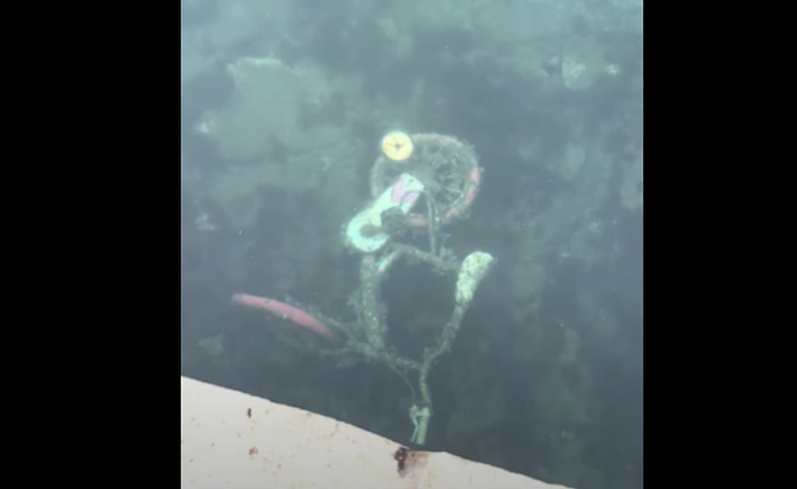 Bicikl u moru po sredini splitske Rive leži na dnu valjda već dvije tri godine. Uz mul za koji je nekada bio privezan čuveni brod Istranka.
