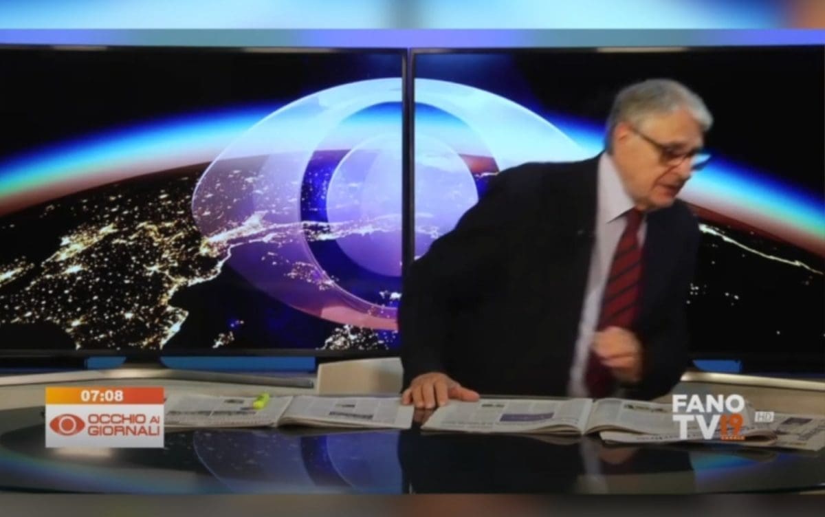 Novinar Massimo Foghetti vodio je emisiju komentirajući nešto u novinama, kad je odjednom zatreslo sve u studiju.