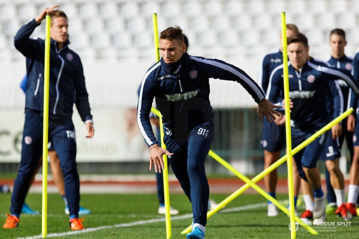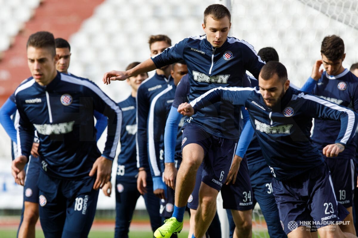 Nogometaši Hajduka odradili su u četvrtak ujutro posljednji na Poljudu uoči polaska u Zagreb gdje će u petak od 18 sati odmjeriti snage s Dinamom u najvećem derbiju hrvatskog nogometa.