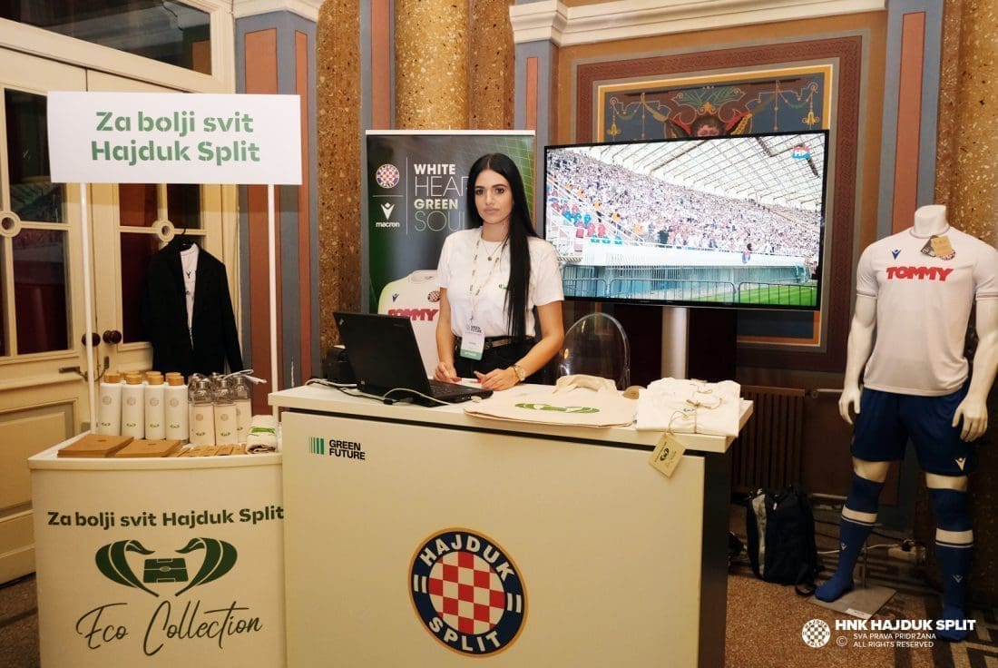 HNK Hajduk tijekom trajanja konferencije imao je otvoren izložbeni prostor u predvorju HNK Split na kojem smo po prvi put prezentirali cijeli niz novih eko proizvoda: Majicu od organskog pamuka s logom zelenog Poljuda, staklenu bocu za vodu, metalnu termo bocu, blok za bilješke, "beskonačnu" olovku izrađenu od bambusa, torbu za kupnju...