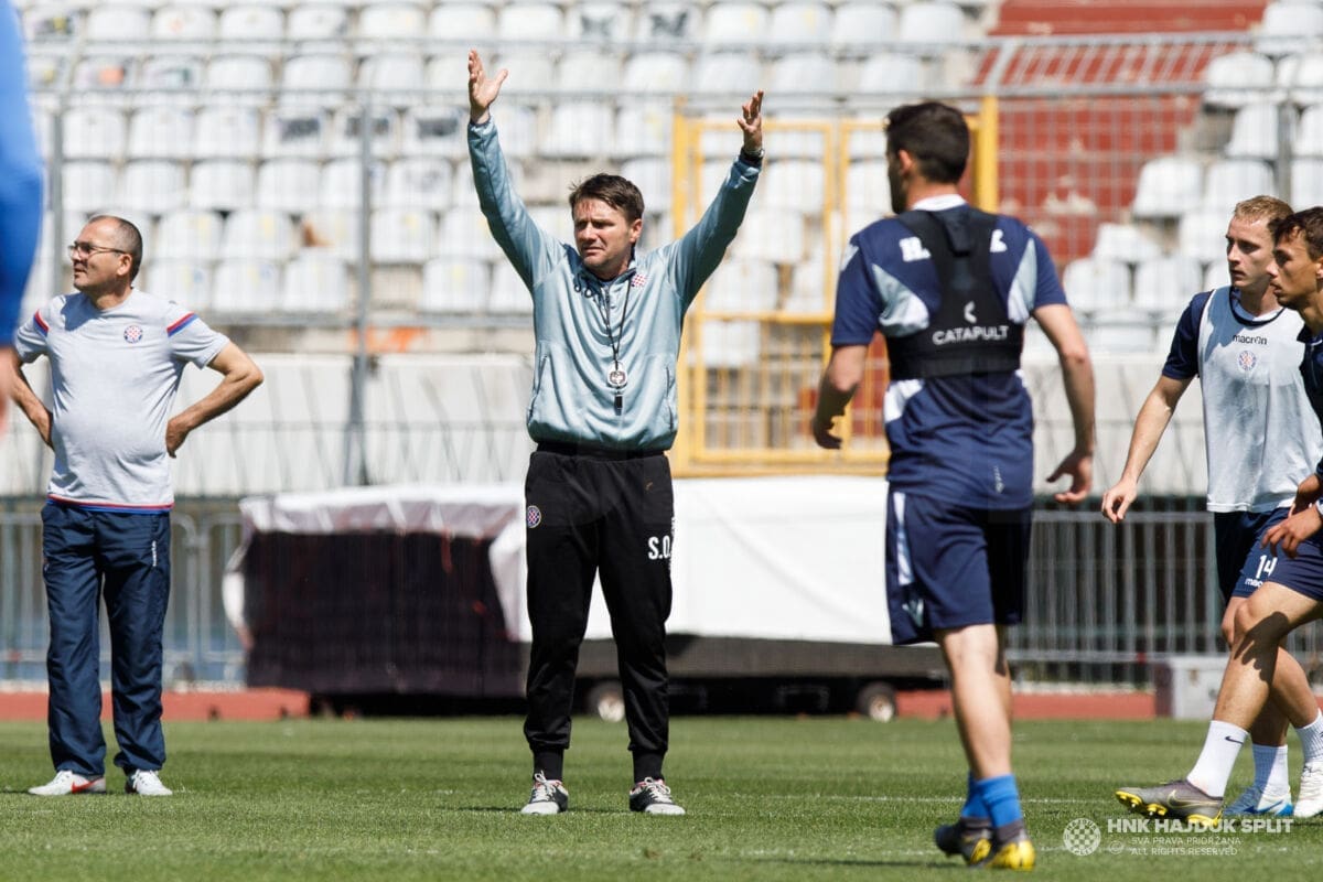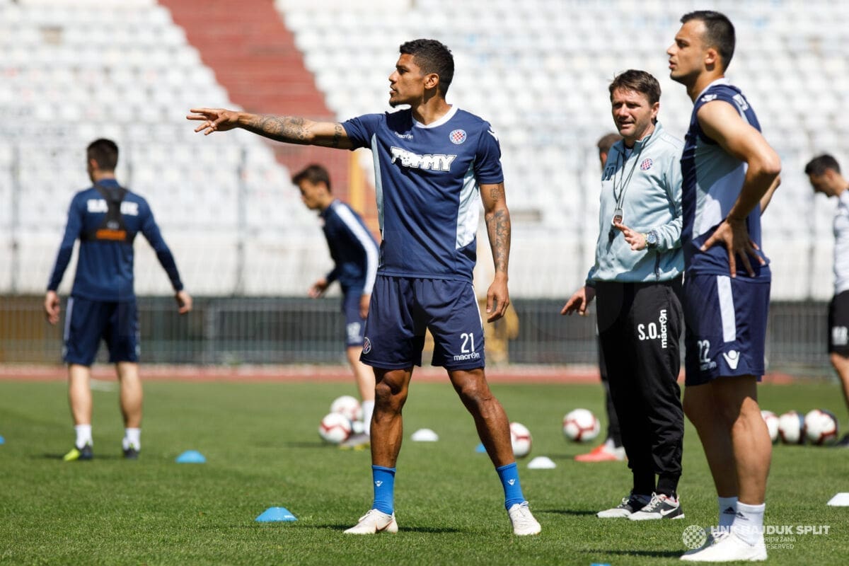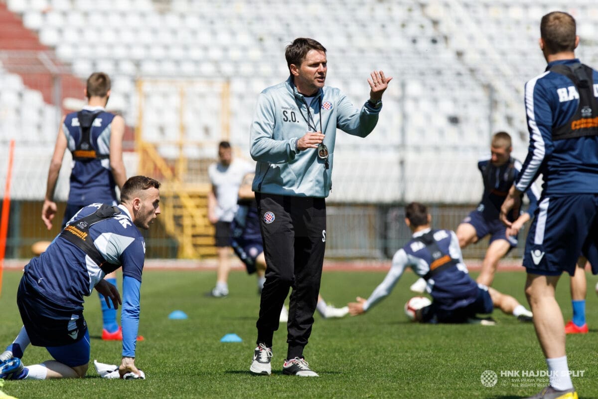 Trener Siniša Oreščanin sa svojim stručnim stožerom danas je poveo trening na glavnom travnjaku Poljuda. Strateg Bijelih na raspolaganju je imao sve igrače osim ozlijeđenih Josipa Juranovića, Stipe Vučura, Josipa Bašića i Gorana Blaževića.