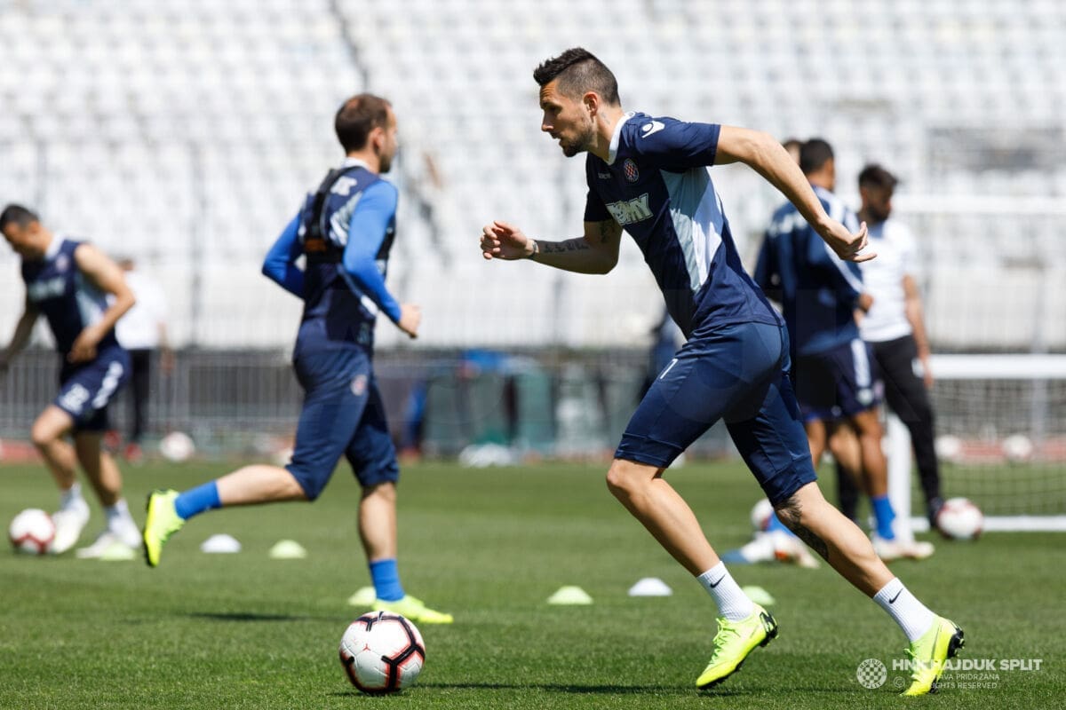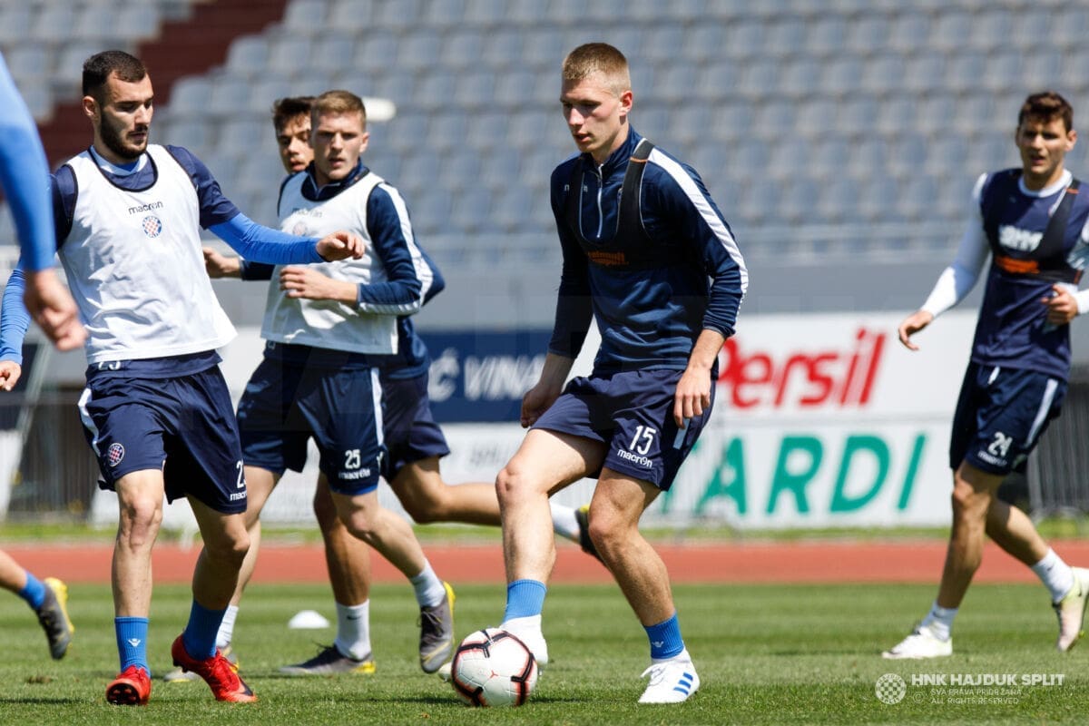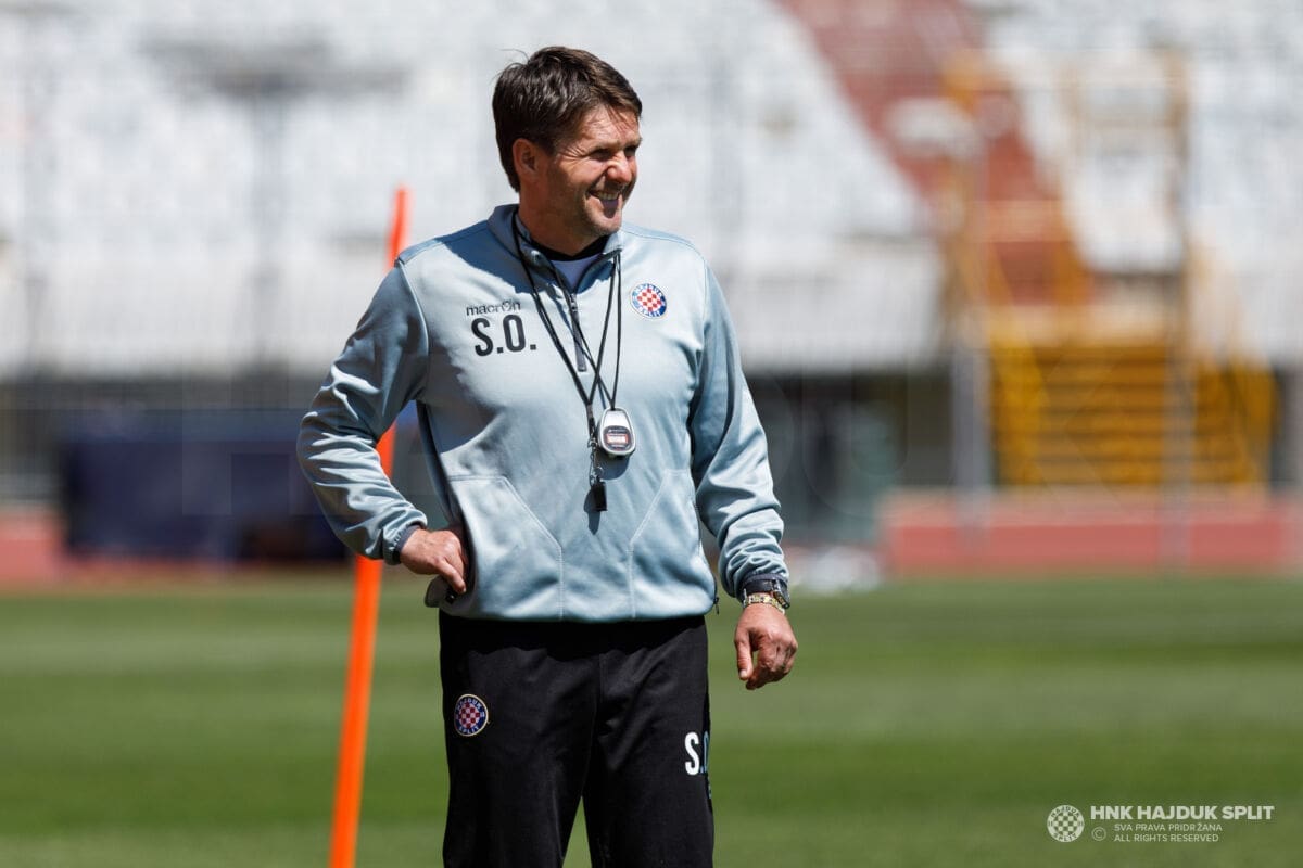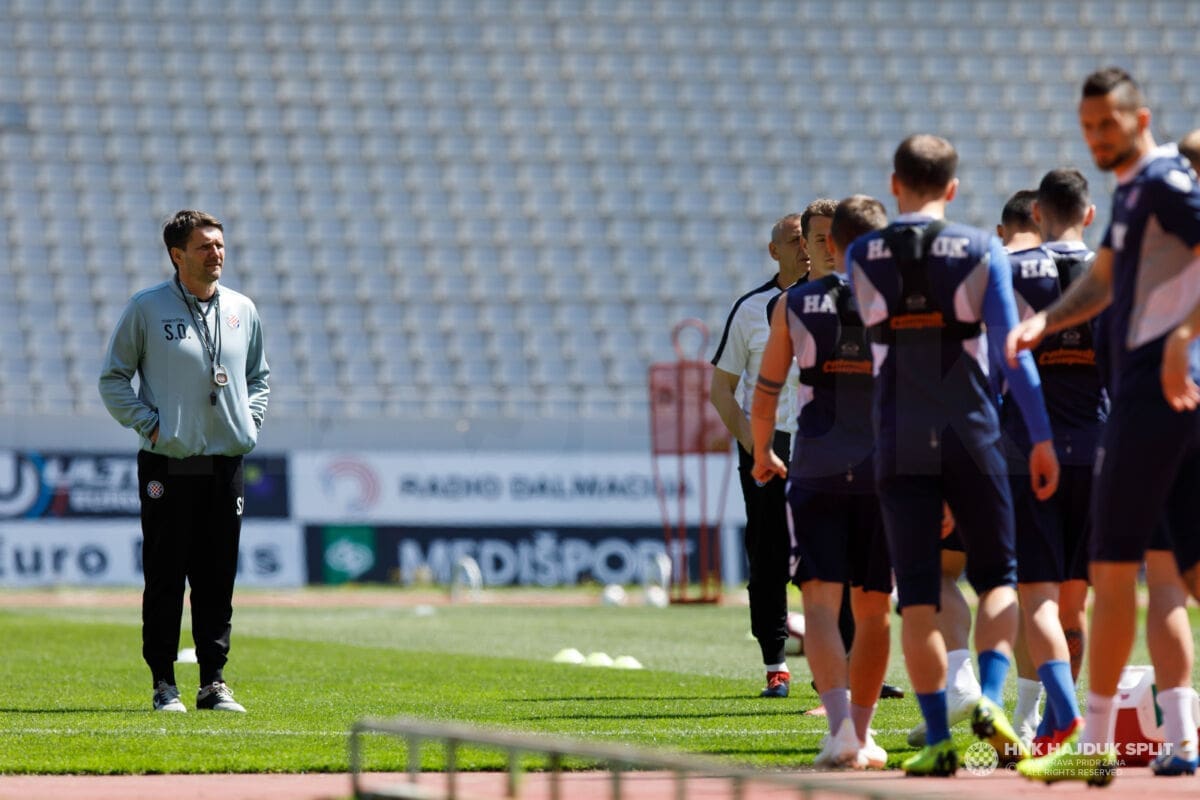Trener Siniša Oreščanin sa svojim stručnim stožerom danas je poveo trening na glavnom travnjaku Poljuda. Strateg Bijelih na raspolaganju je imao sve igrače osim ozlijeđenih Josipa Juranovića, Stipe Vučura, Josipa Bašića i Gorana Blaževića.