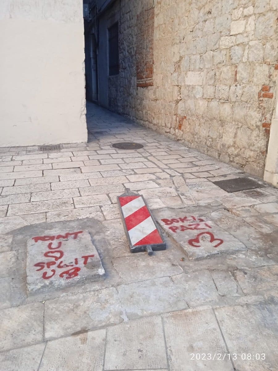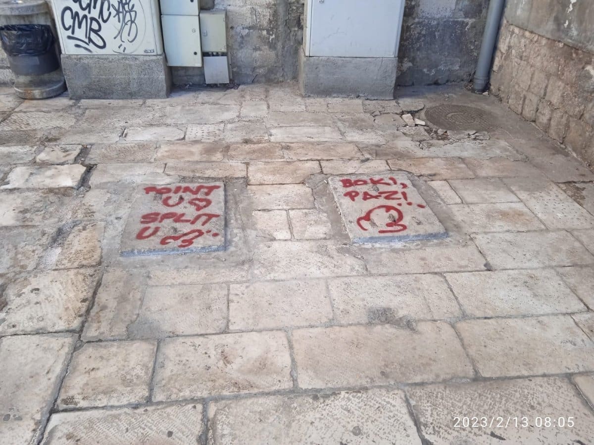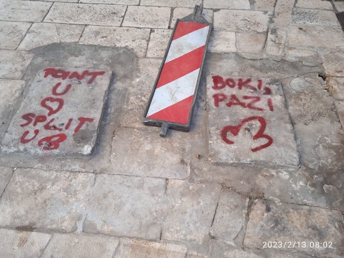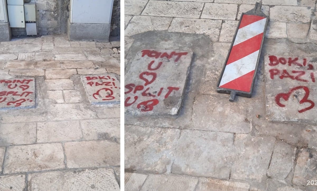 "Point u srcu, Split u ku***, jedna je od poruka ispisanih na mjestu gdje je nekad bila trafika.