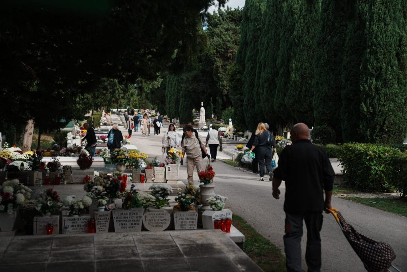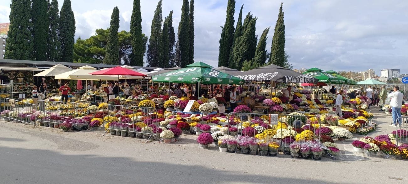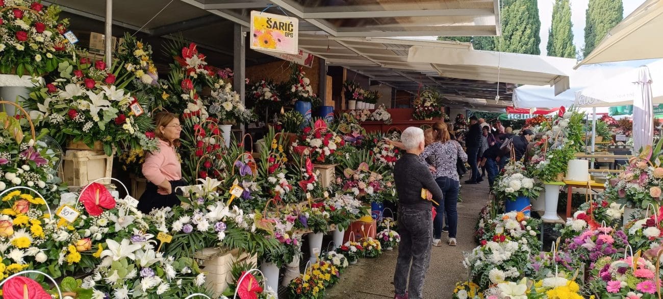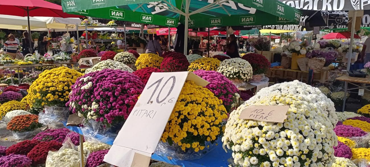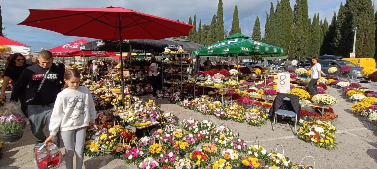 Što se tiče ponude cvijeća, pitara i aranžmana, kao i svake godine izbora ima. Od nekoliko eura za pojedinu krizantemu, preko 8-10 eura za pitare, pa do 30, 40 ili 80 eura za različite cvjetne aranžmane. Većina prodavača se nekako skanjivala dati nam izjavu, makar i anonimno, o tome kako ide posao, jel’ ima više svita nego prošlih godina, i je li osjećaju i oni učinak inflacije…