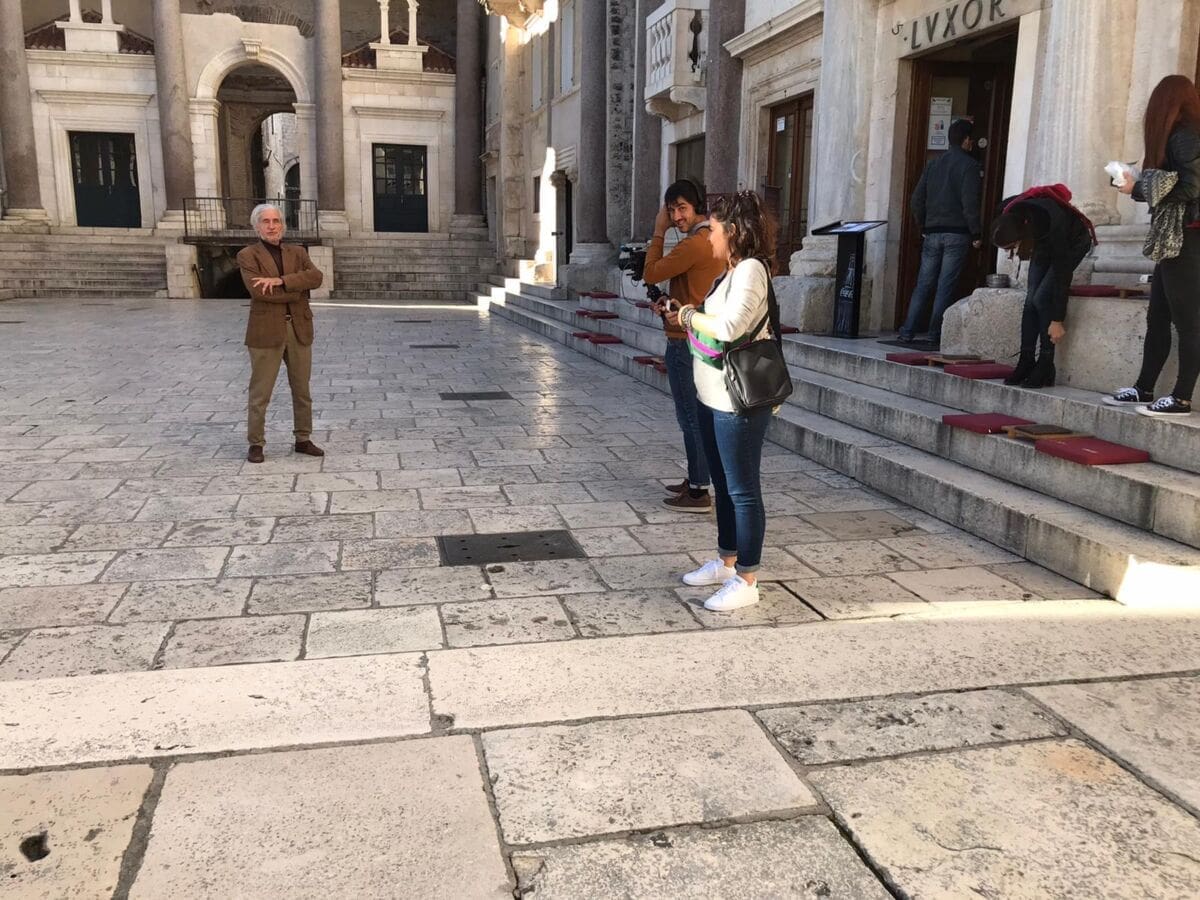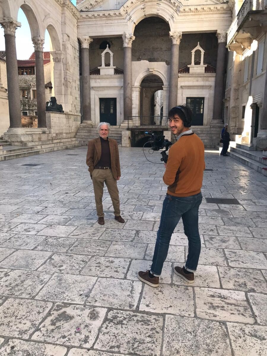 Talijana s francuskom adresom Lucu Bergamaschija i njegovu asistenticu Pauline Bernard-Vernay smo zatekli danas u Splitu. Split im je samo jedna od postaja na kojoj će se zaustaviti prilikom snimanja dragulja Unesco-a u našoj zemlji. Čast da im budu domaćini je pripala vrsnim znalcima povijesti i sadašnjosti svoga grada Vedranu Matošiću i Gerardu Denegriju.