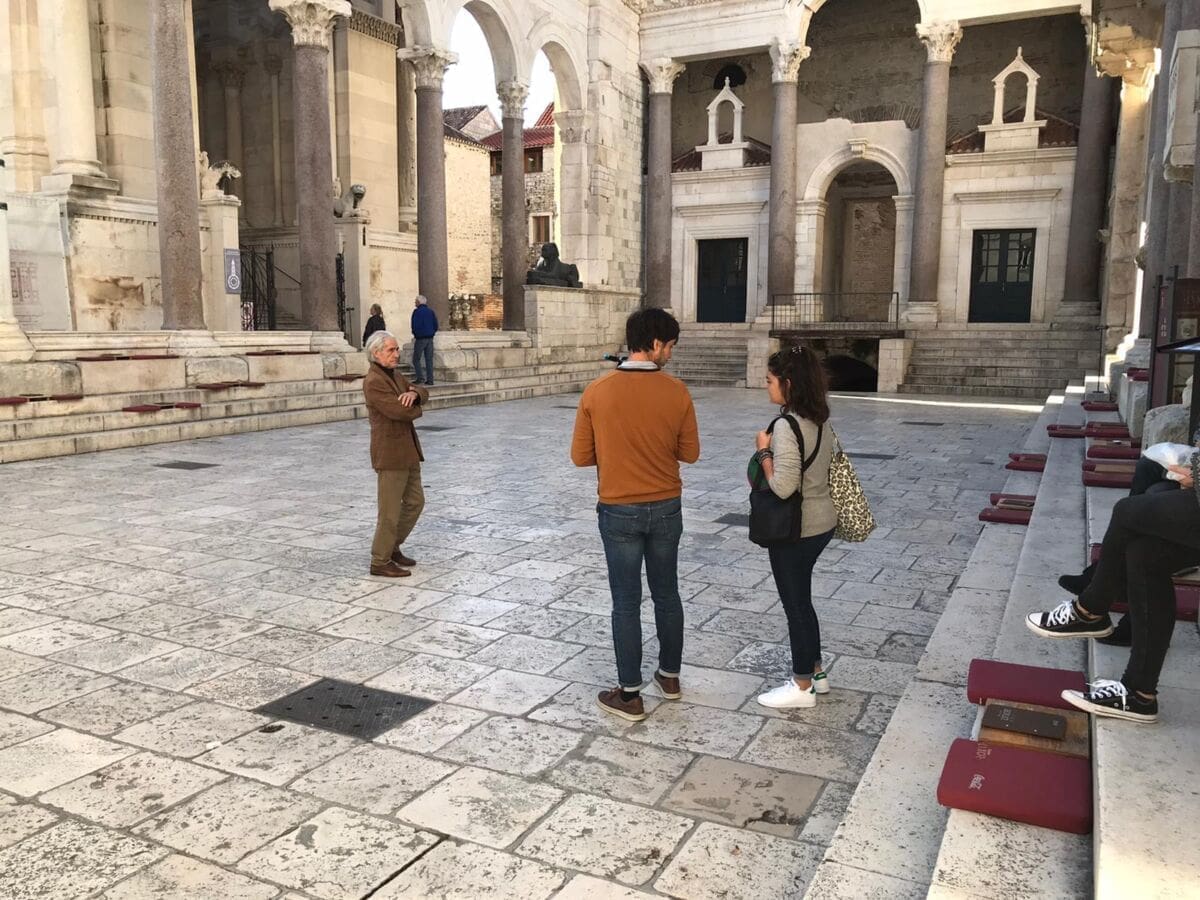 U Palači su ih ugostile dvije zasigurno najmlađe vrtlarice u Splitu, petogodišnja Magdalena i dvogodišnja Mirja Judita Đanović čiji su roditelji ispričali gostima kako je biti dio živućeg spomenika starijeg više od 1700 godina. Jednako tako, gosti su se upoznali s činjenicom kako se život u Palači mijenjao iz stoljeća u stoljeće i kako taj kontinuitet života traje do danas.
