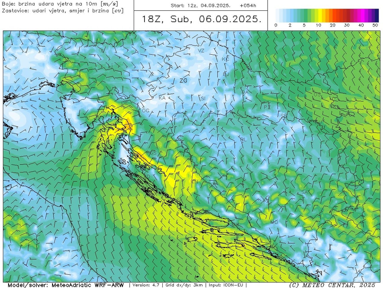 Vedro će biti tijekom subote. Podno Velebita će ujutro puhati jaka bura s olujnim udarima, drugdje slaba do umjerena bura. Danju umjeren vjetar sa zapada i sjeverozapada koji će popodne na moru Dalmacije ponegdje biti jak. Od jutra malo toplije, a najviše dnevne temperature od 28 do 33°C.