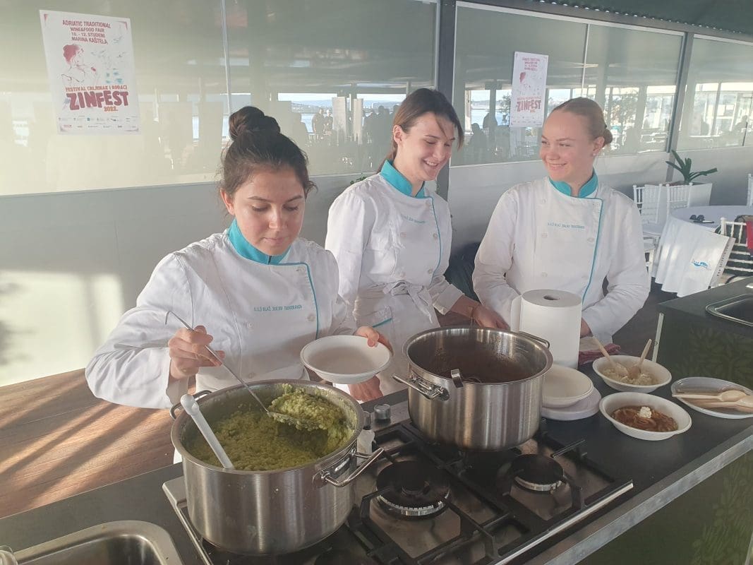 Kuhali su učenici četiriju srednjih škola: SŠ Braća Radić - Kaštel Štafilić, Srednja škola Imotski, SŠ Blaž Juraj Trogiranin iz Trogira te Turističko-ugostiteljska škola iz Splita sa svojim profesorima Ivanom Romcem, Nikolom Dragunom, Mariom Pavićem, Lorenzom Pervanom, Marijom Kezela i Ljiljom Zulim. Kuhali su sipu i bob, orzo s kozicama, razne brujete, njoke, kozice i čips od kapule, ali i kremu od čokolade s Crljenkom.