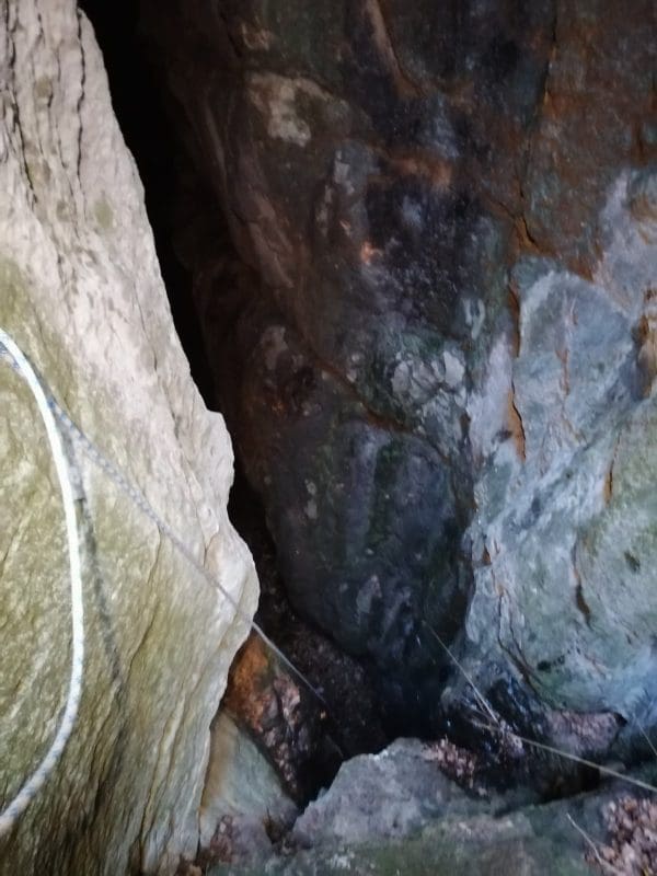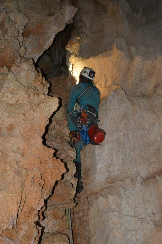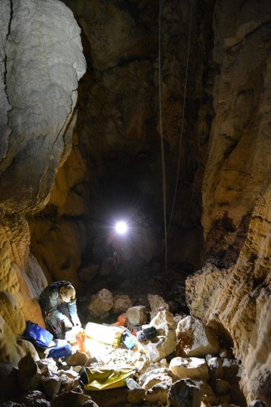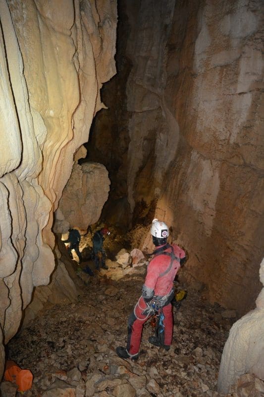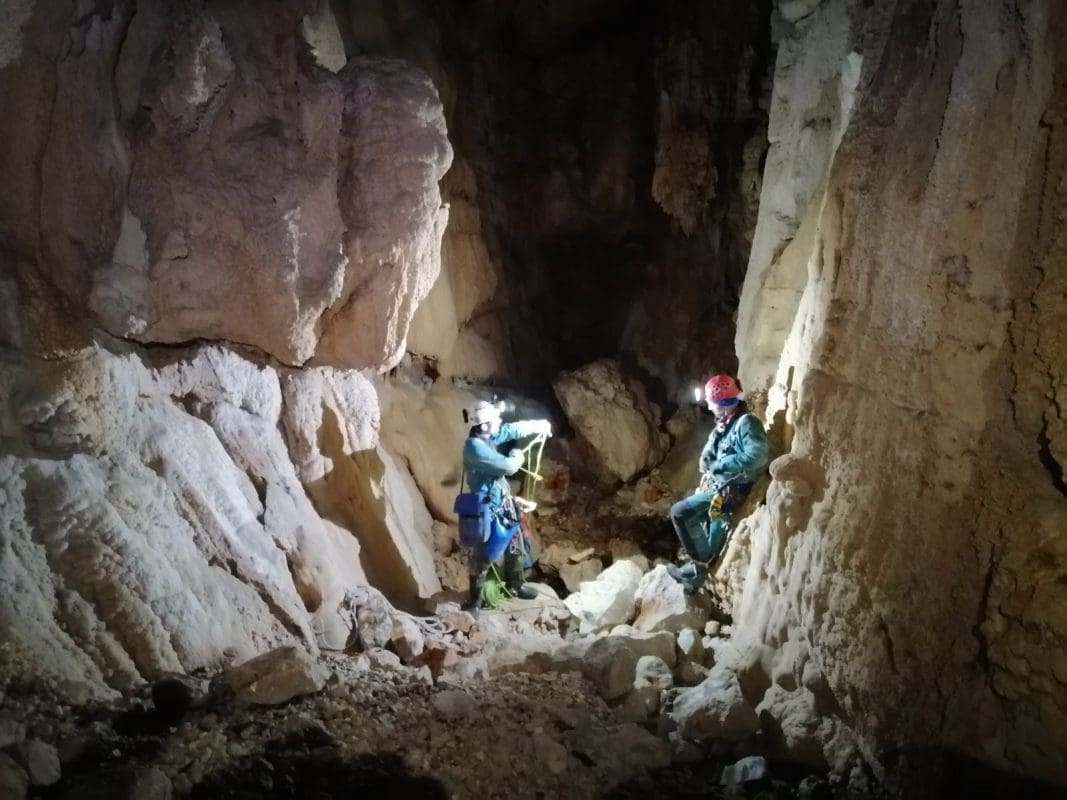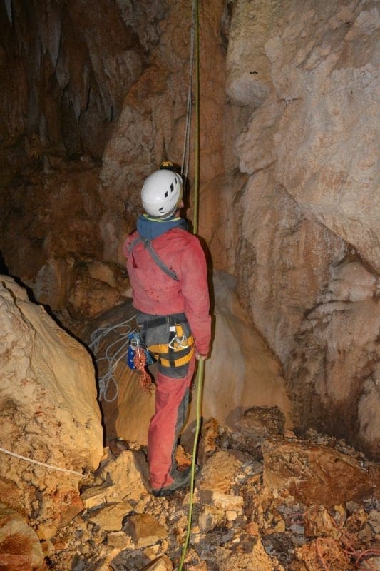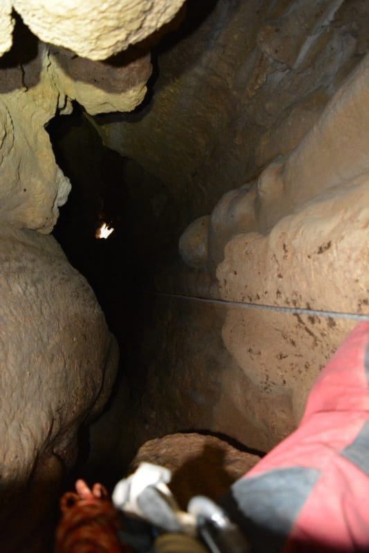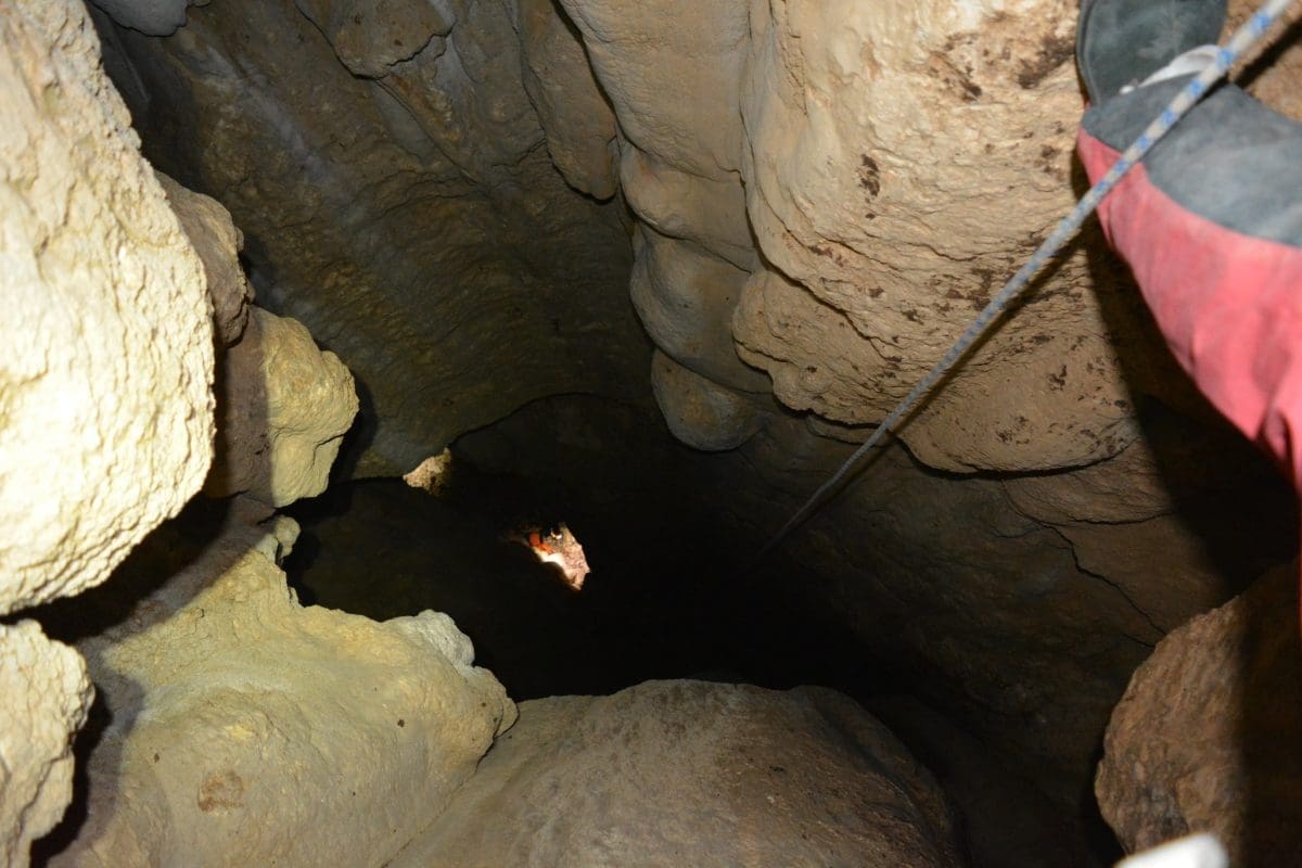 Nakon par sati što pripreme - što penjanja, dva člana ekipe uspjeli su savladati petnaestak metara "penja", a jama nam je priredila iznenađenje i lijepu vijest - ide dalje dvadesetometarskom vertikalom. Izmoreni završavamo istraživanje do nekih skorih vremena.