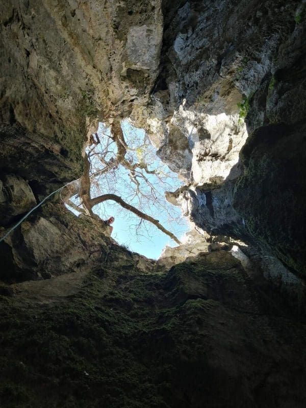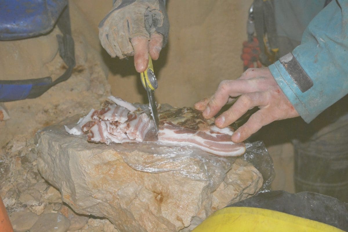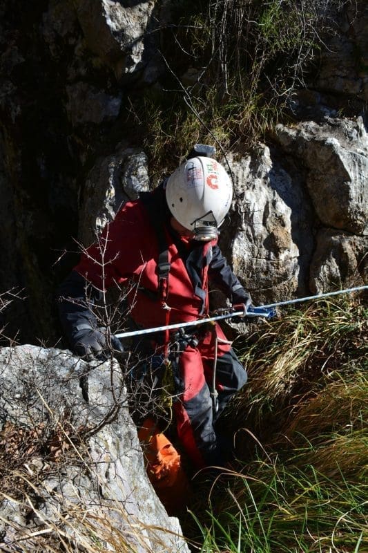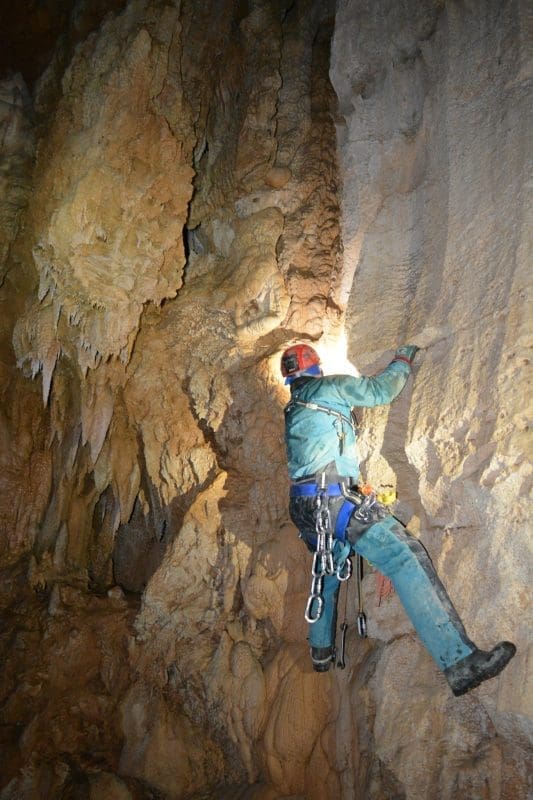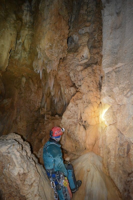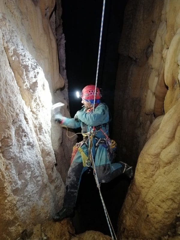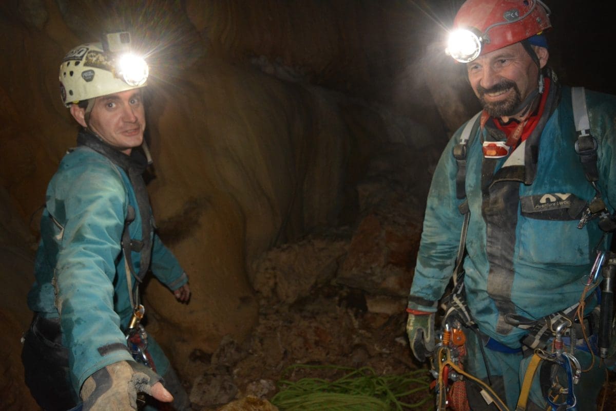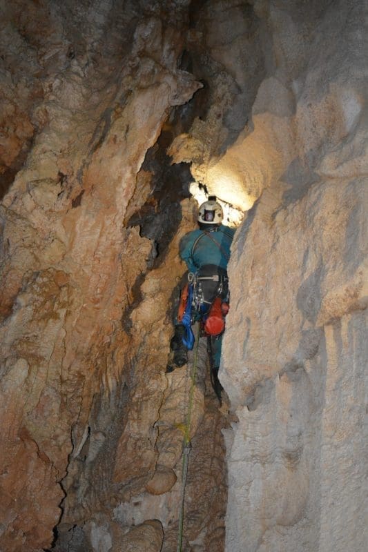 Nakon par sati što pripreme - što penjanja, dva člana ekipe uspjeli su savladati petnaestak metara "penja", a jama nam je priredila iznenađenje i lijepu vijest - ide dalje dvadesetometarskom vertikalom. Izmoreni završavamo istraživanje do nekih skorih vremena.