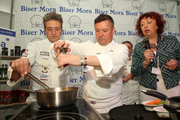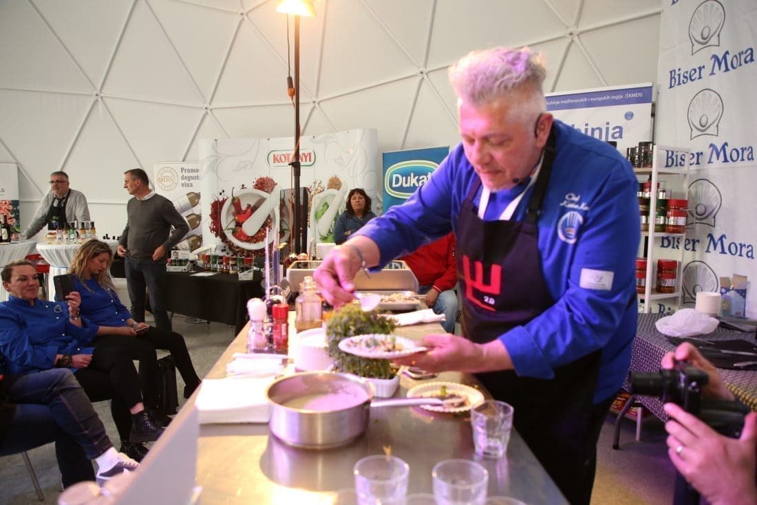 Iskusni talijanski chefovi Luca Gioiello i Pavel Marc iz Associazione Cuochi di Trieste u subotu su otvorili serijal master classova pripremom autohtonih talijanskih jela. Pripremali su specijalitet kozice omotane laredo pancetom s kremom od bijelog graha, kao i toskansku deliciju - leću i uz bogato začinjene svinjske kobasice cotechine koje traže dugo kuhanje.