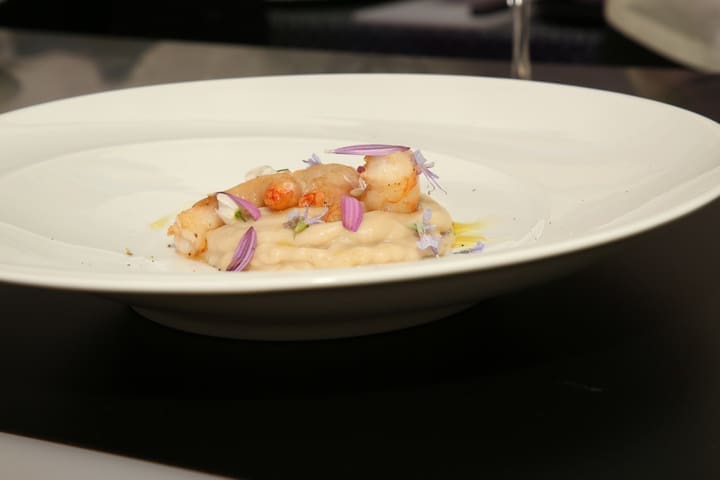 „Prvo jelo je bilo spoj regionalnih talijanskih kuhinja, na neki način pokušao sam opisati sebe. Rodom sam Napolitanac, a živim i radim u Trstu. Tako su i ove kozice s laredo pancetom i grahom objedinile ta dva kraja, a posluženu su i uz jestivo cvijeće od luka i ružmarin. Leća s cotechino kobasicama u mnogim talijanskim kućama jede se na novogodišnjoj večeri, a vjeruje se da ova stara narodna delicija donosi sreću i blagostanje“ - istaknuo je Gioiello, predsjednik Associazione Cuochi di Trieste i međunarodni kulinarski sudac.