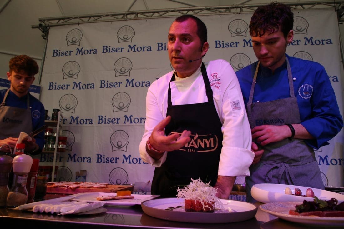 Albanac Sokol Prenga, jedan od vodećih chefova svoje zemlje, promotor tamošnje nacionalne gastronomije te poznato televizijsko lice, na svom cooking showu prvog dana Bisera mora pokazao je "trilogiju tune" - moderna jela s nizom kulinarskih tehnika i nesvakidašnjih dodataka.
