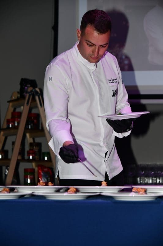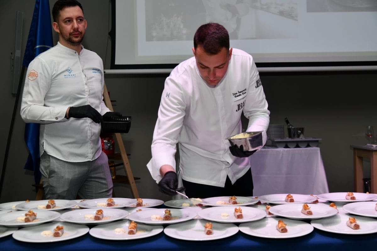 Kako se priprema inovativno glavno jelo od škampa po uzusima visoke turske gastronomije drugog dana Bisera pokazao je Emrah Köksal Sezgin. Direktor je Turkish National Culinary Teama koji je na Brač ove godine doveo oko 50-ak natjecatelja, kao i vrhunske turske slastičare poznate širom svijeta po izradi skulptura od šećerne paste. Emrah je tijekom karijere osvojio više od 50 medalja s međunarodnih kuharskih natjecanja. Posljednjih godina je međunarodni kulinarski sudac, edukator i zalaže se za popularizaciju turske kuhinje u svijetu. Pripremio je orzo sa škampima i sudžukom, turskom kobasicom od govedine.