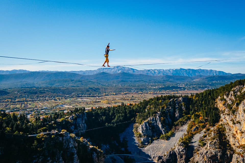 "Uspio je jedan Nijemac u svom naumu, jučer je prešao svih 670 metara, bez pada, bez stajanja, bez sjedanja. Sada su stavili još jedan slack tako da su sada tamo dva - jedan od 670 metara i drugi od 280 metara koji je odmah ispod vidikovca na Modrom jezeru tako da se može puno bolje vidjet njih", kazao nam je Luka Kolovrat, direktor Turističke zajednice Imota.
