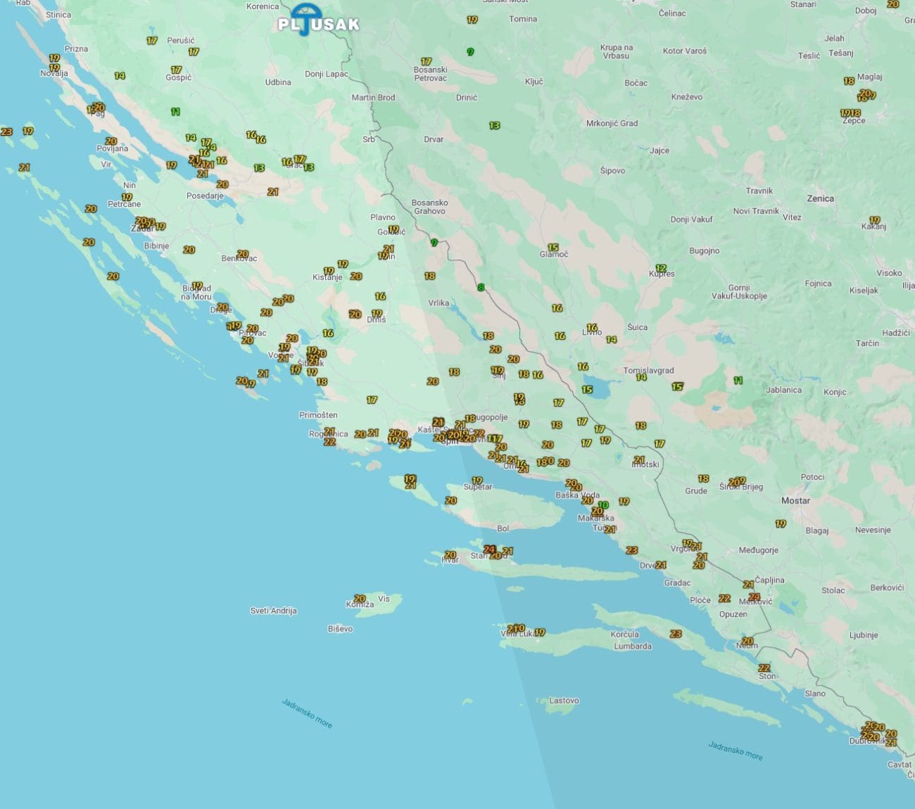 U dijelovima Dalmacije najviše dnevne temperature zraka prelazile su 20 stupnjeva Celzijusovih.