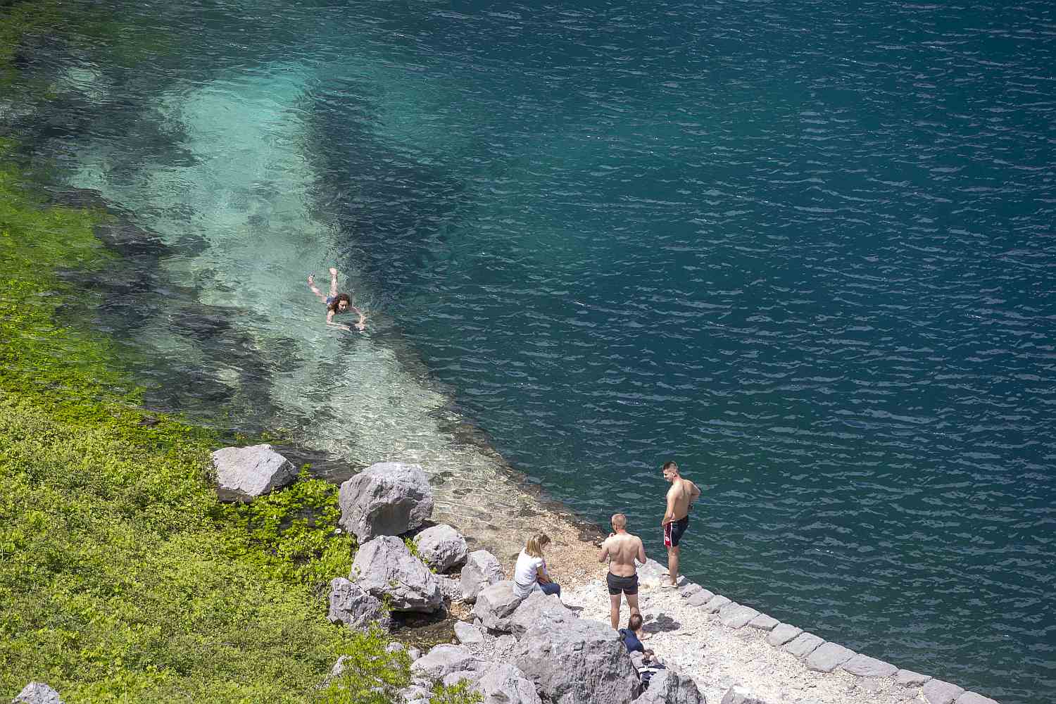Dok se more tek grije za pravu sezonu kupanja na Jadranu, sudeći prema fotografijama koje smo dobili danas iz Imotskog, nisu svi opterećeni temperaturom kada je u pitanju kupanje. Tako se nekoliko ljudi danas kupalo na Modrom jezeru iako mu je procijenjena temperatura tek oko 12°C.