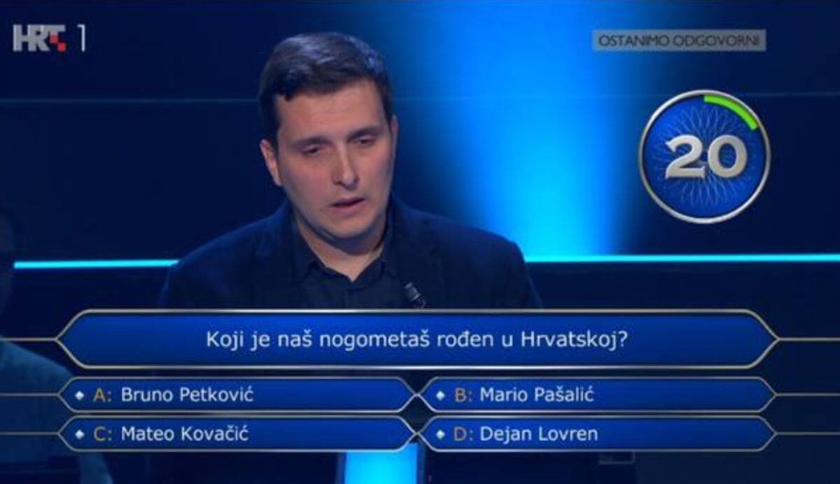 Pitanje za 32.000 kuna glasilo je: “Koji je naš nogometaš rođen u Hrvatskoj?”. Ponuđeni odgovori su bili Bruno Petković, Mario Pašalić, Mateo Kovačić ili Dejan Lovren. Ivan je na ovom pitanju iskoristio posljednji joker i nazvao prijatelja koji mu je ponudio točan odgovor – Bruno Petković.
