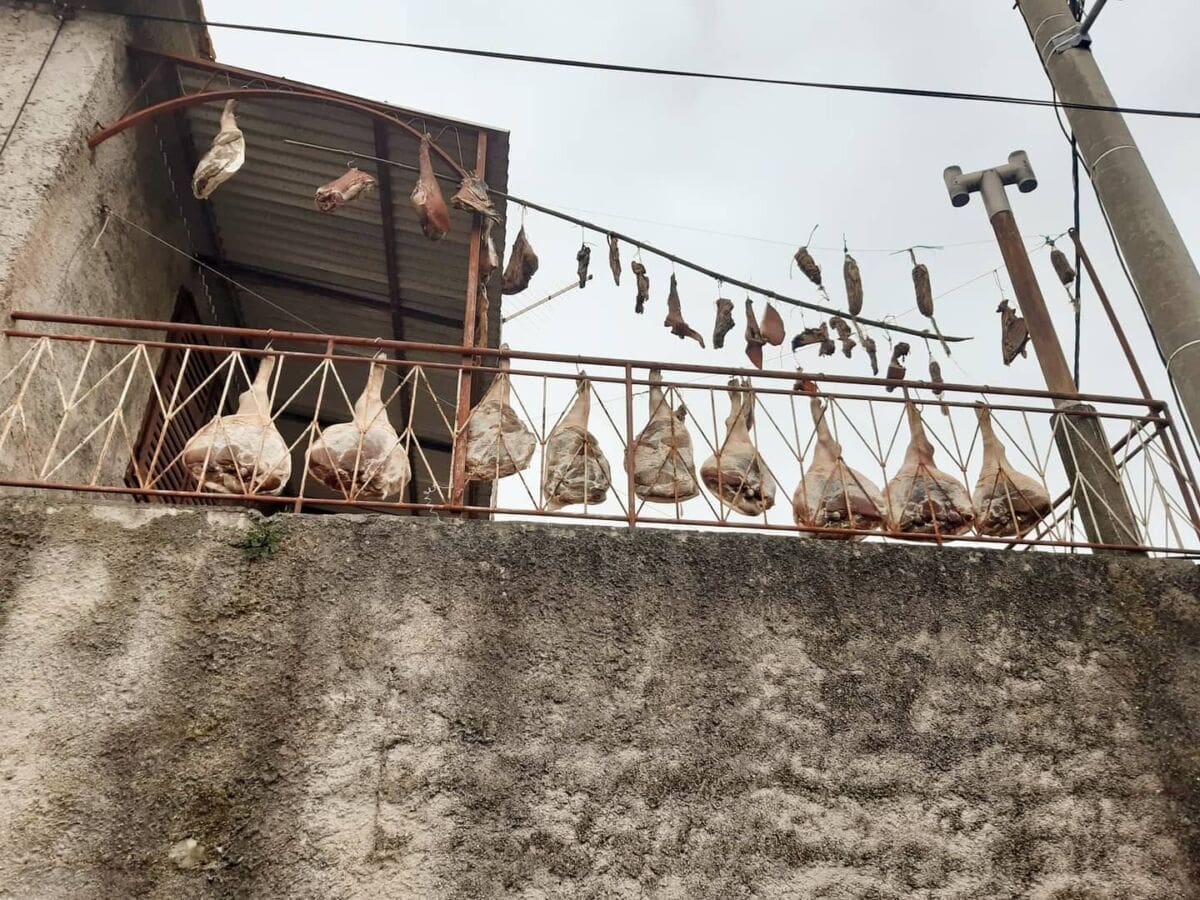 Posljednjih tjedana vremenske prilike u Dalmaciji nisu na ruke išle onima koji su morali sušiti meso. No to nije neke obeshrabrilo da cijeli "asortiman" izlože na balkonu.