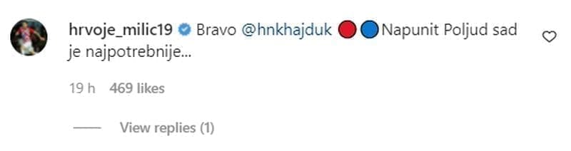 On je ispod Hajdukove objave ostavio komentar, u kojem je pozvao sve na utakmicu.