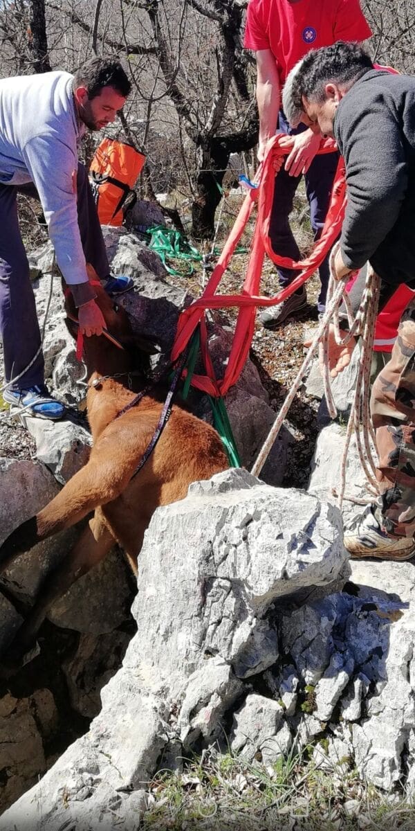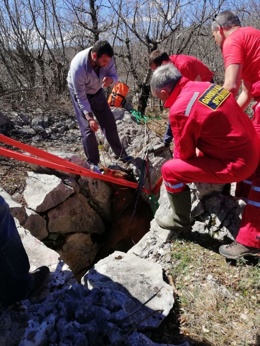 Trojica gorskih spašavatelja su uz pomoć mještana nesretnu životinju izvukli iz jame živu i zdravu.