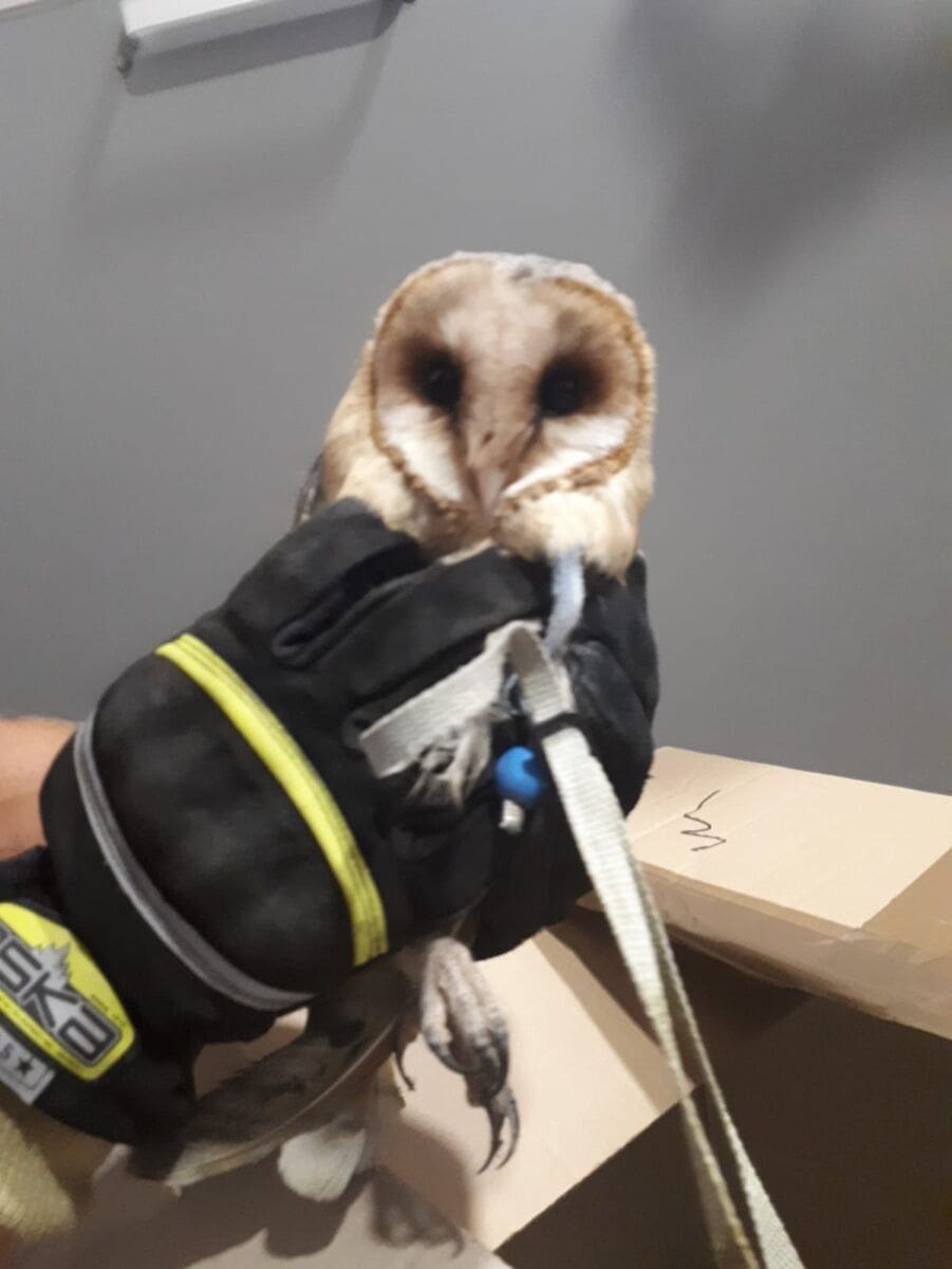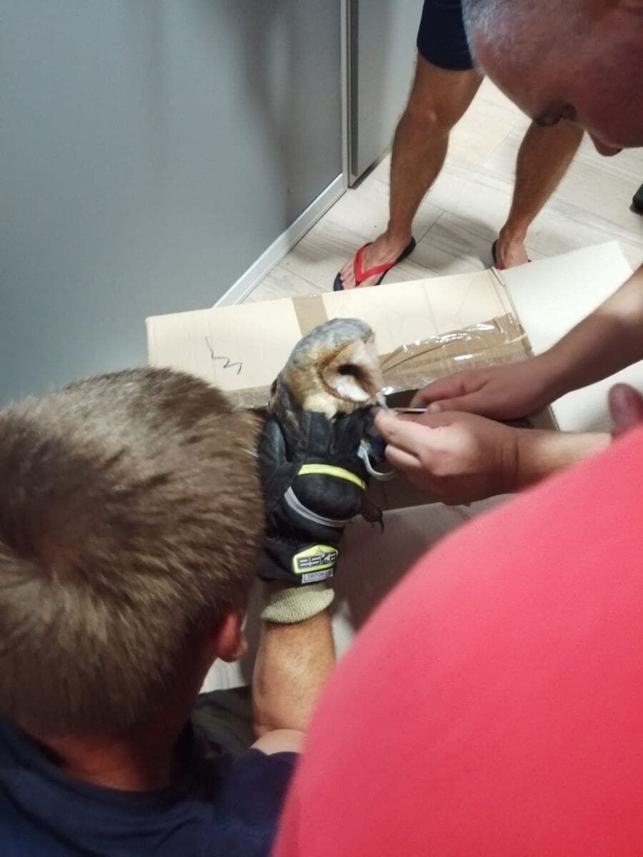 Odmah po dojavi na teren je izašla ekipa od 3 vatrogasca s 1 vozilom. Nakon 9 minuta vatrogasci su uhvatili uplašenu životinju koja je bila umotana u povodac za pse. Po tome se može zaključiti da je netko sovu držao za "kućnog ljubimca".