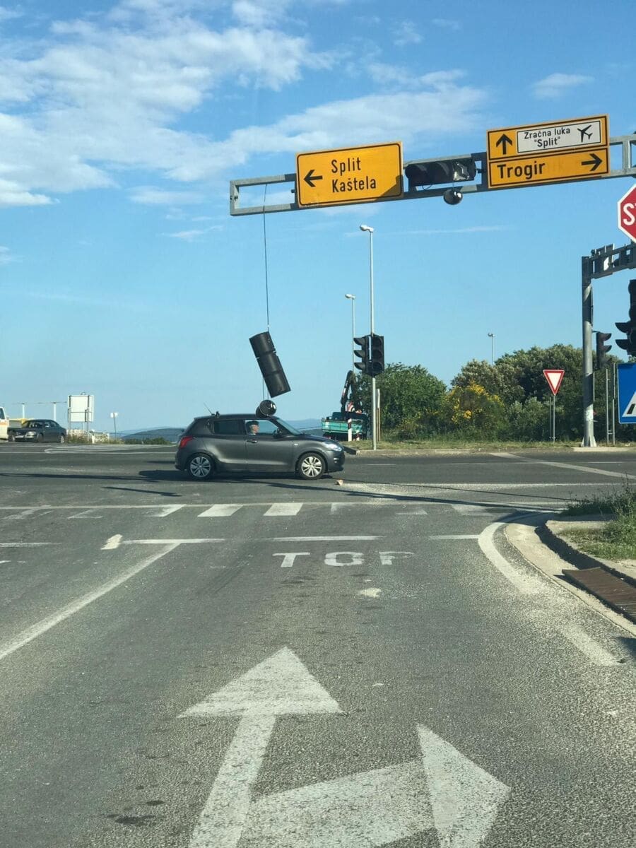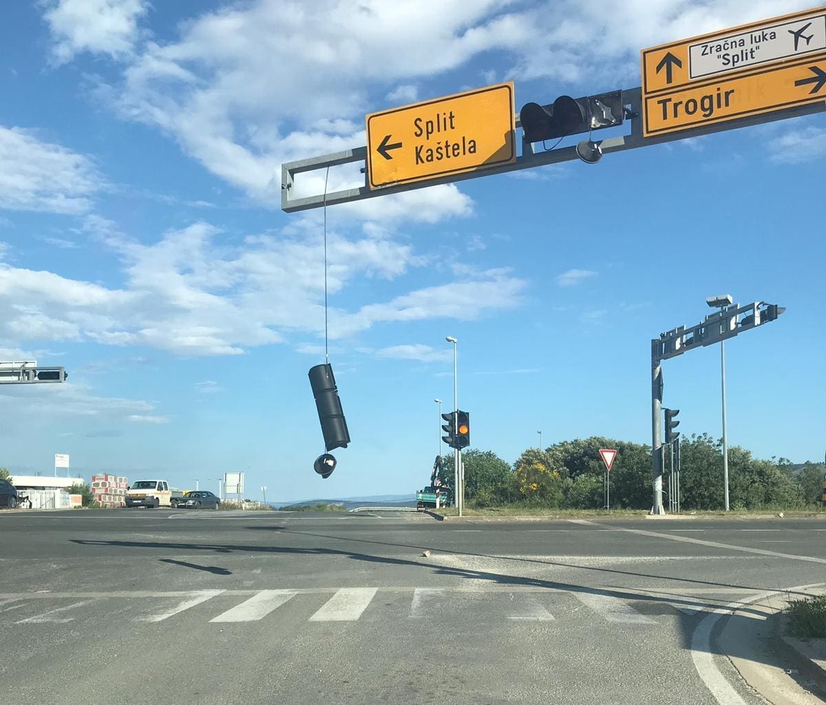 Nije nam poznato ima li ozlijeđenih no viseći semafor svakako predstavlja opasnost.